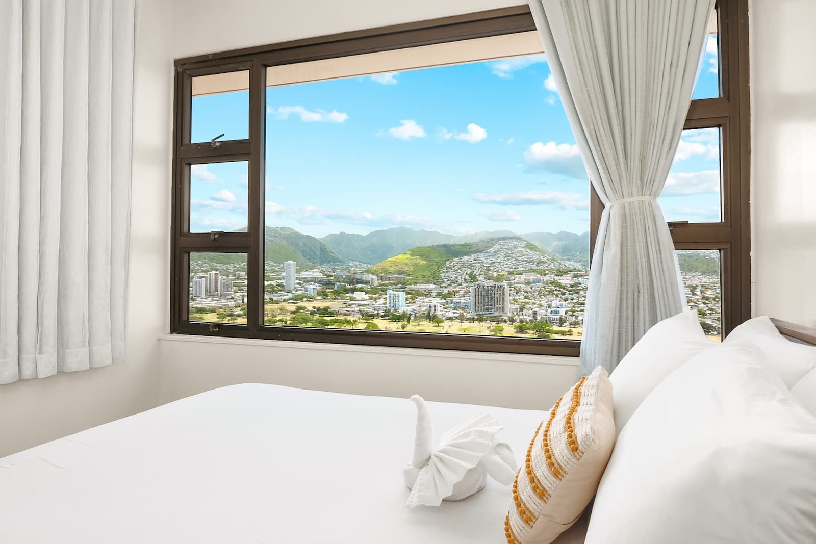 The bedrooms in our Oʻahu vacation rentals are designed as peaceful havens adorned with high-quality linens that promise restful nights. Whether you choose a tranquil retreat or an inspiring urban view, each bedroom offers a unique perspective of Oʻahu’s allure.