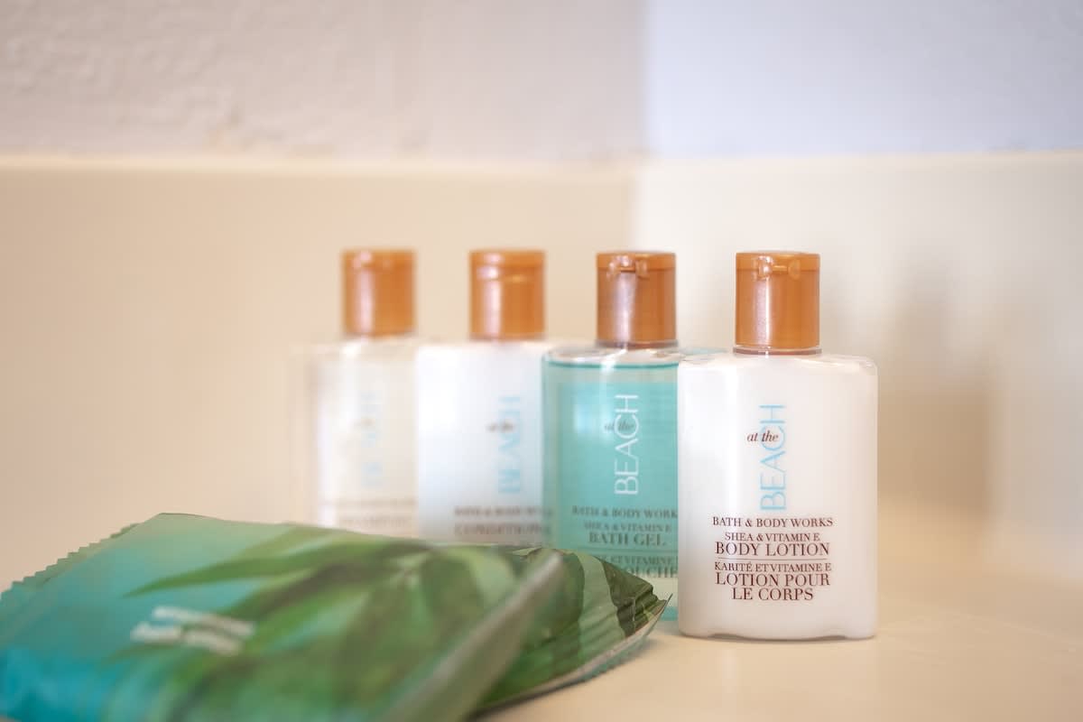 – Your very own Aloha Pack: coffee filters, salt and pepper, laundry detergent, dish soap and sponge, hand soap, shampoo/body wash/lotion set, toilet paper, paper towels, tissues, and cleaning supplies.