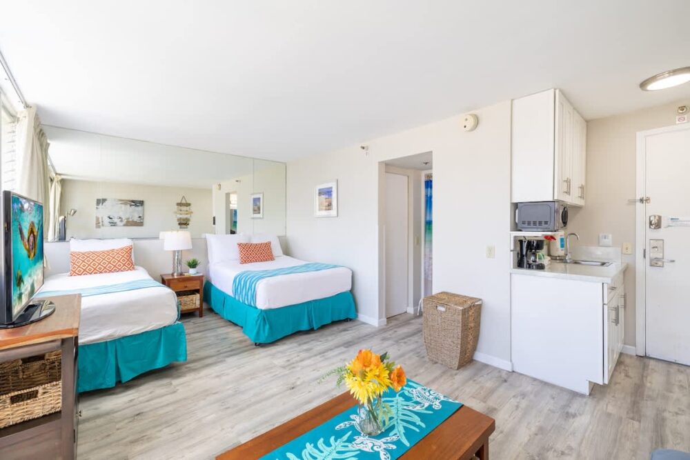 Nestled in the heart of the world-famous Waikiki, you’ll enjoy easy access to all the treasures this historic area has to offer. From shopping and dining to the Waikiki Market Food Pantry (a grocery store conveniently located on the corner of Kuhio Ave), and an abundance of entertainment options, not to mention the iconic Waikiki Beach!