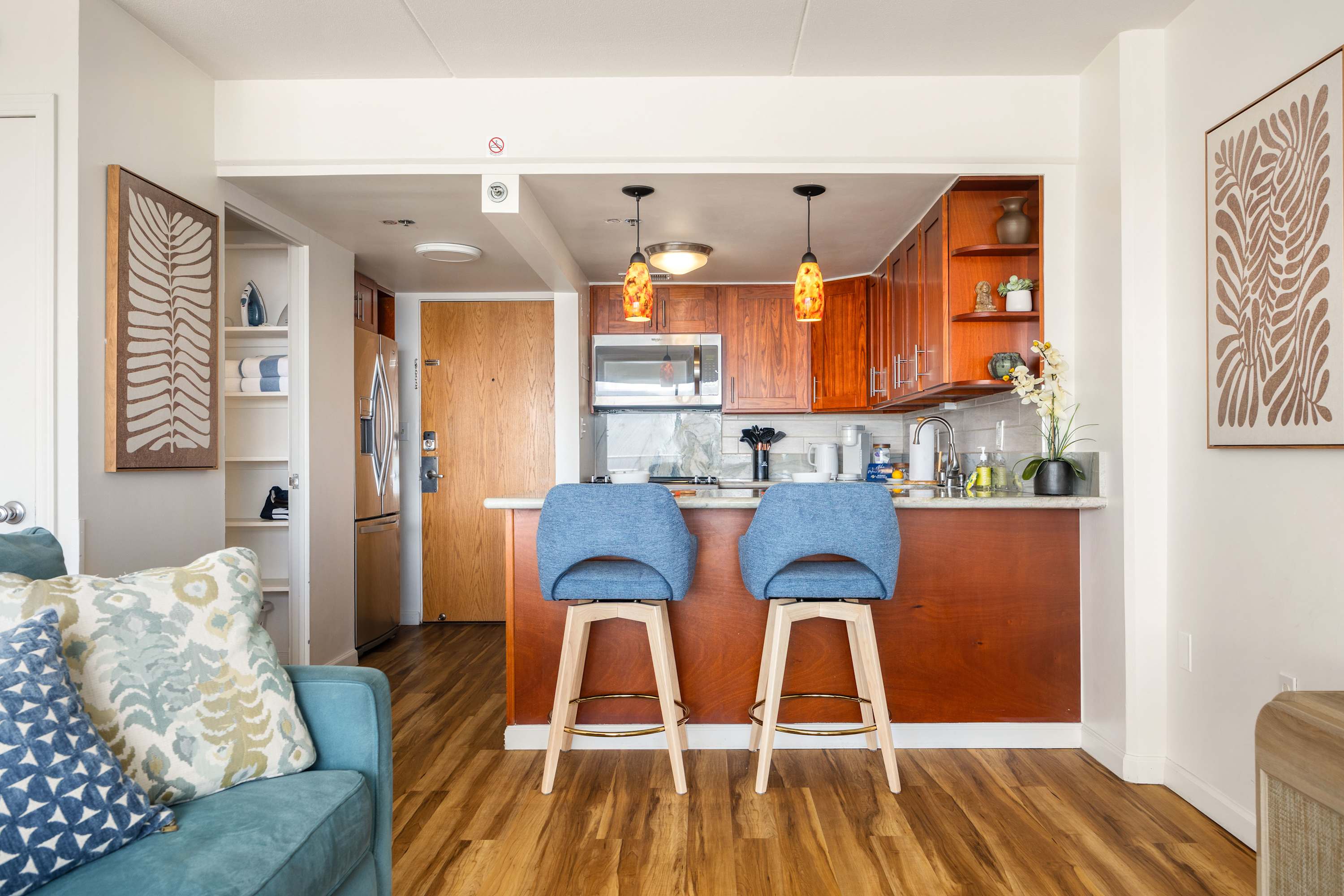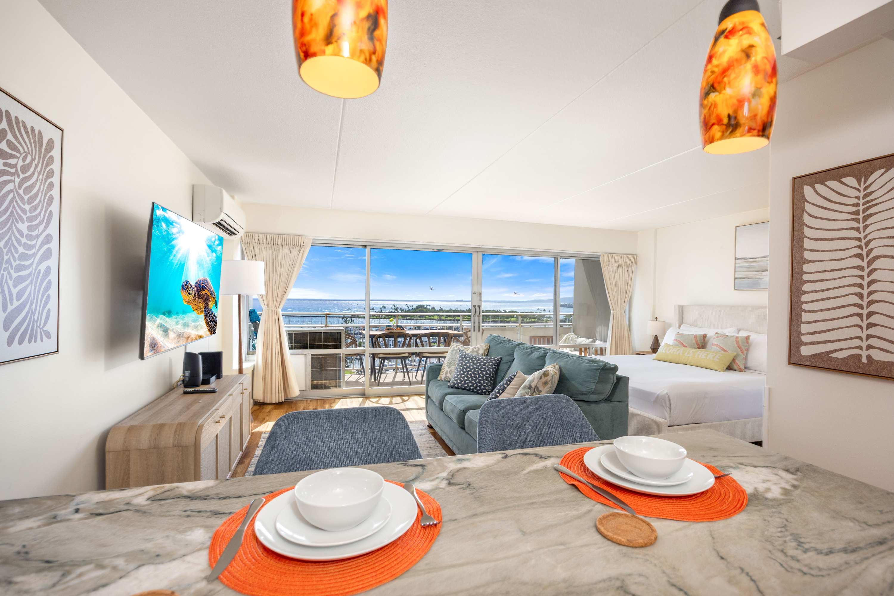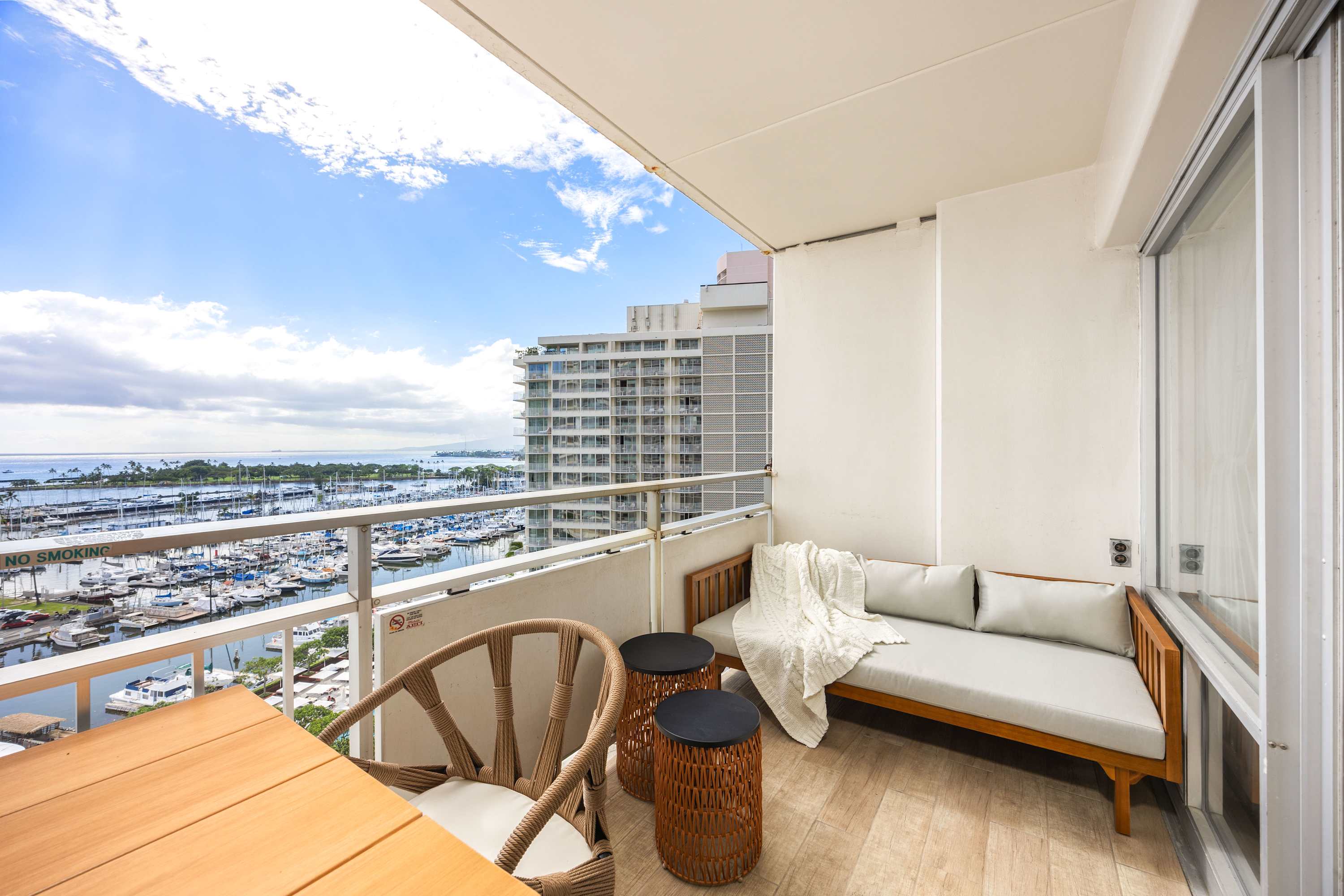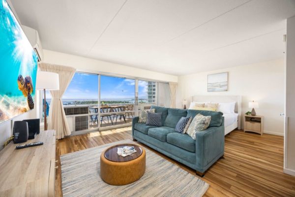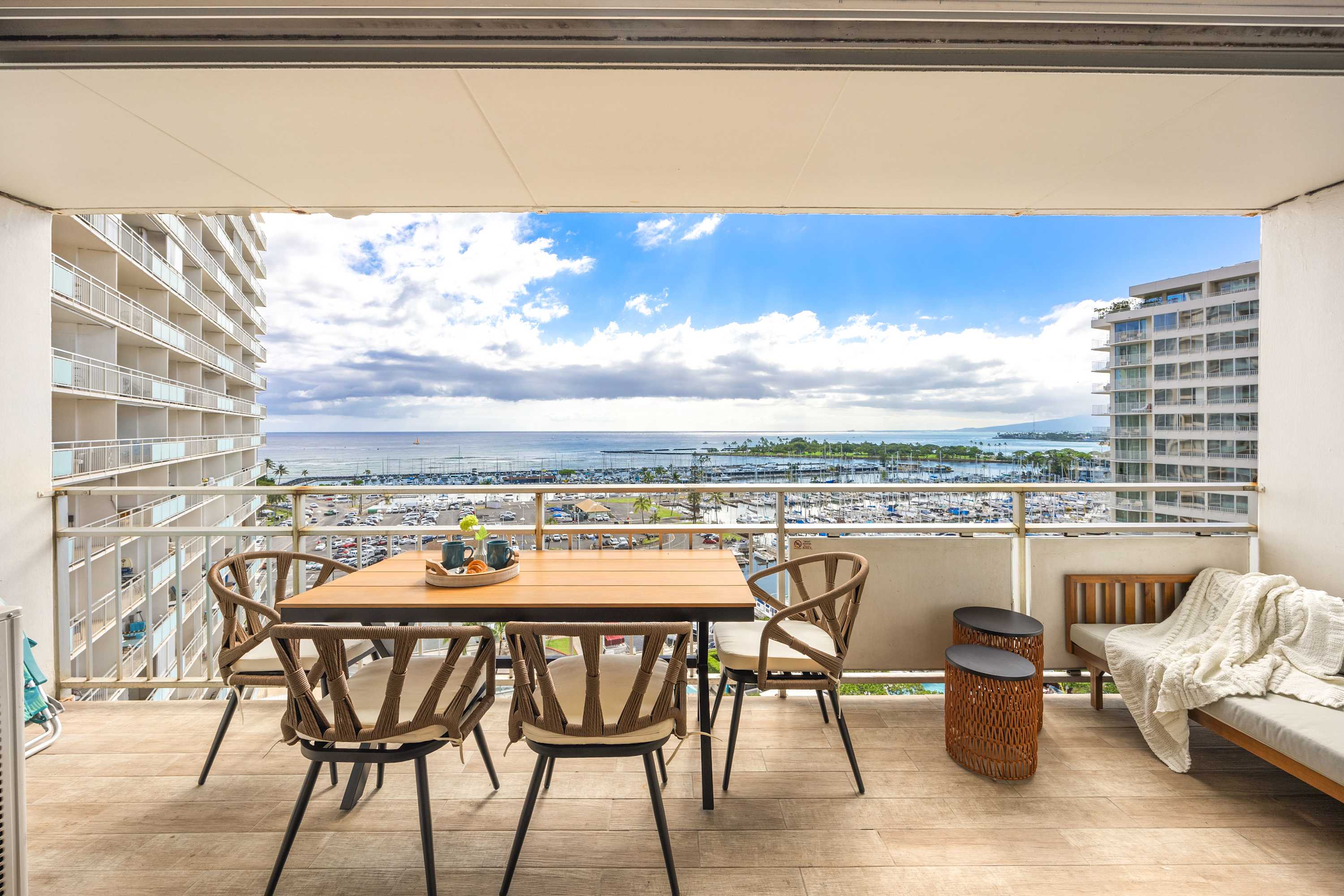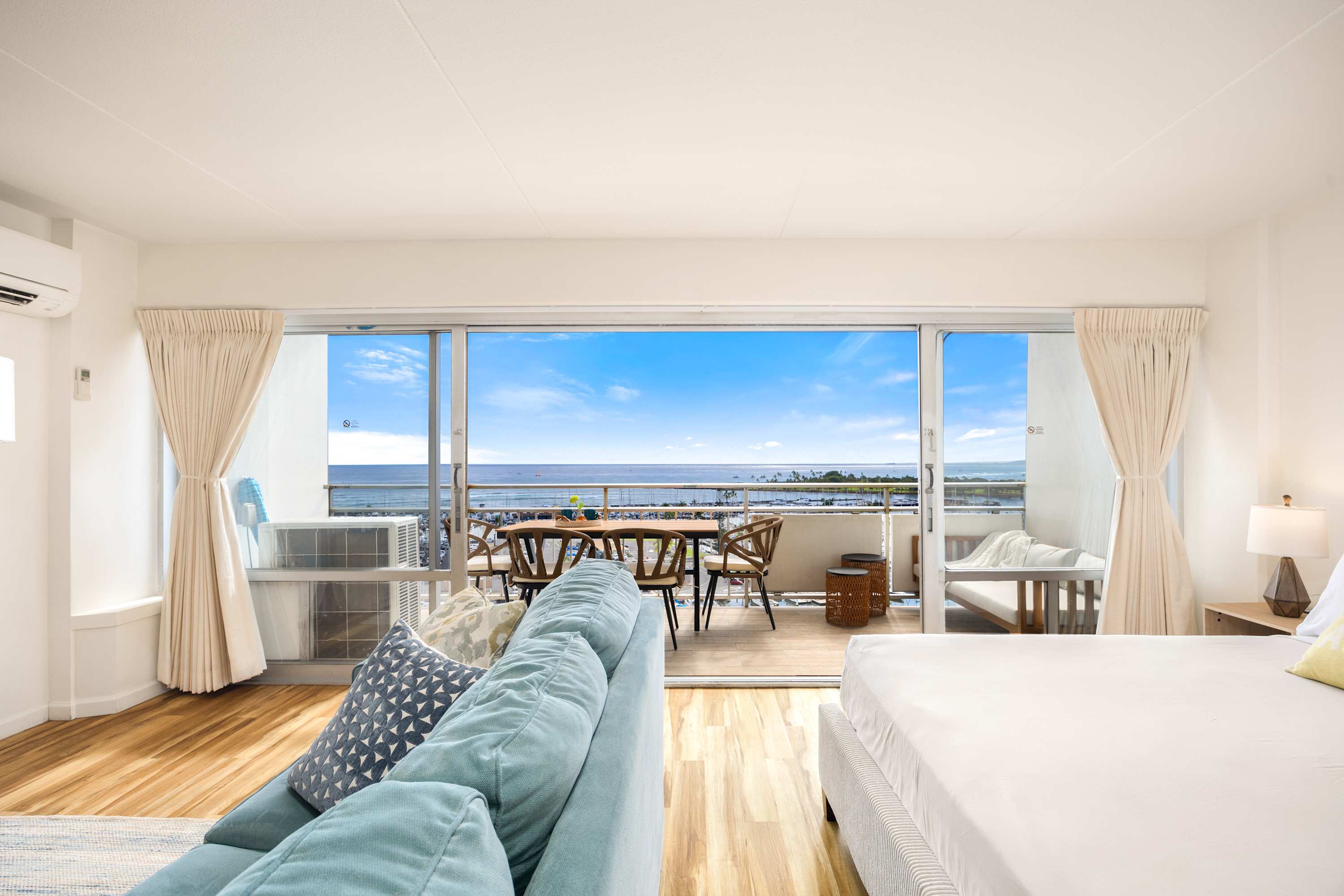 Enjoy stunning ocean and marina views from this 11th-floor studio at the Ilikai Hotel, perfectly located at the entrance of Waikiki. Just a short walk to the beach, Ala Moana Center, and top dining spots, it offers both convenience and a relaxing island stay!