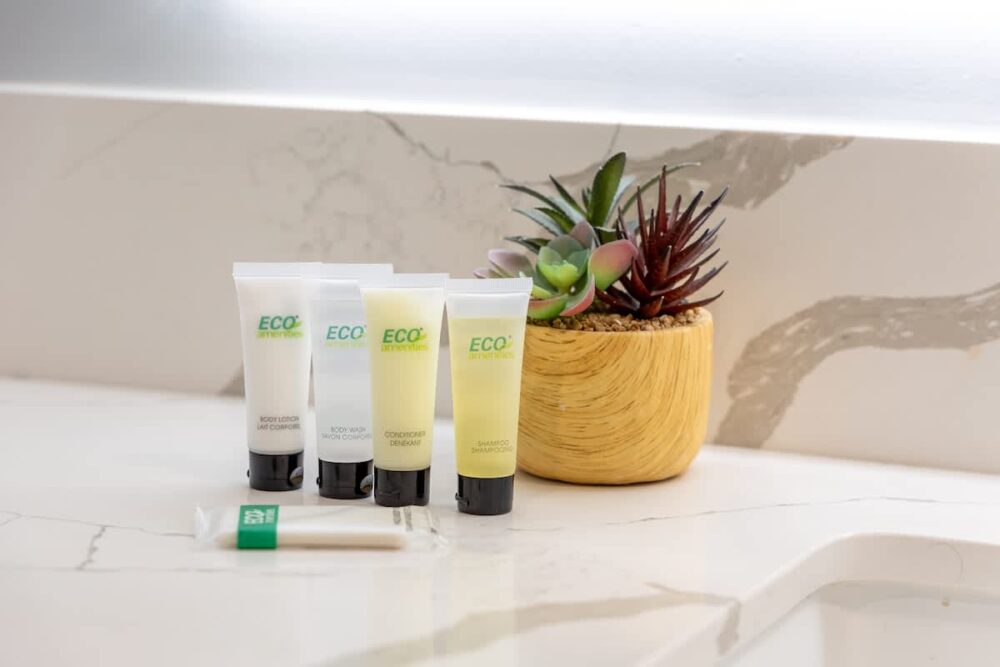 – Start-up supplies: coffee filters, Welcome coffee pack, salt & pepper, laundry detergent, dish soap, sponge, hand soap, welcome set of shampoo, body wash and body lotion, toilet paper, paper towels, tissue, and basic cleaning supplies.