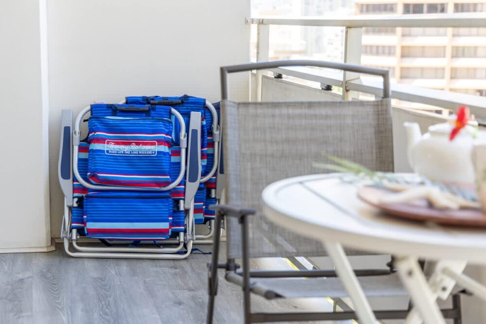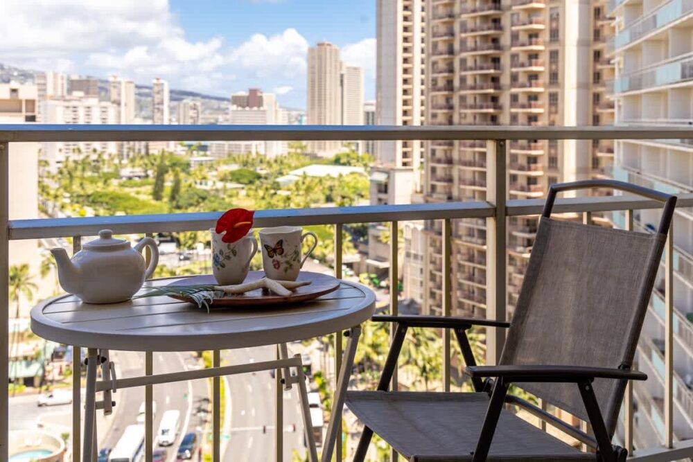Stay cool with the split AC, and relax on the regular sectional sofa while watching your favorite shows on the 43” smart TV. Need to catch up on work? No problem – there’s an ergonomic chair and work table for your convenience. Enjoy your meals at the dining counter with three bar stools or take it outside to the balcony with a table and four chairs for an al fresco dining experience. When it’s time to unwind, the bathroom with a walk-in shower provides a relaxing retreat. This studio condo truly has everything you need for a memorable and comfortable stay in Waikiki.
