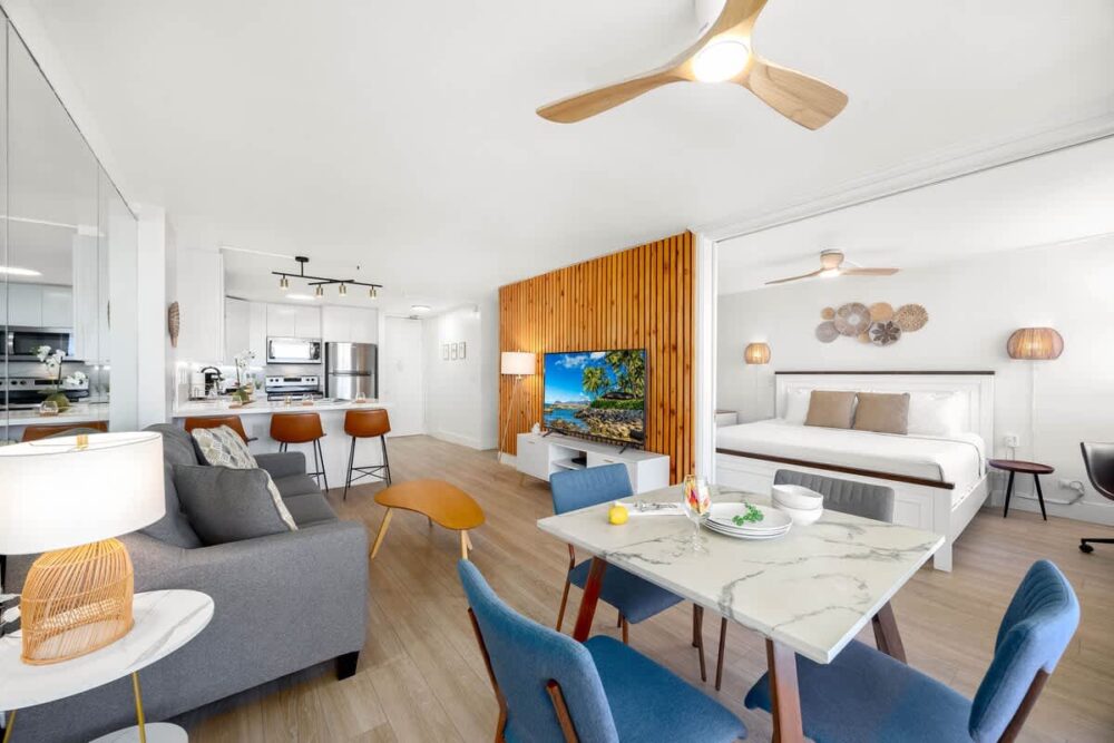 Immerse yourself in paradise with this charming one-bedroom condo at Ilikai Marina, where dazzling sunsets and panoramic views of the ocean and Ala Wai Yacht Harbor await. Perfect for a serene escape, this cozy retreat comfortably hosts up to 4 guests!