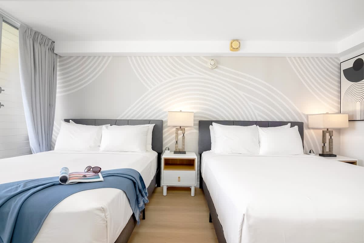 Just a 7-minute stroll to the world-famous Waikiki beach, this stylish retreat features 2 queen beds, a 65″ Smart TV, split AC, free WiFi, and a well-equipped kitchenette. Perfectly located near shopping, dining, and nightlife for the ultimate island experience! Gym access is available for $10 (one-time fee), and on-site parking is $45/day (prices are subject to change).