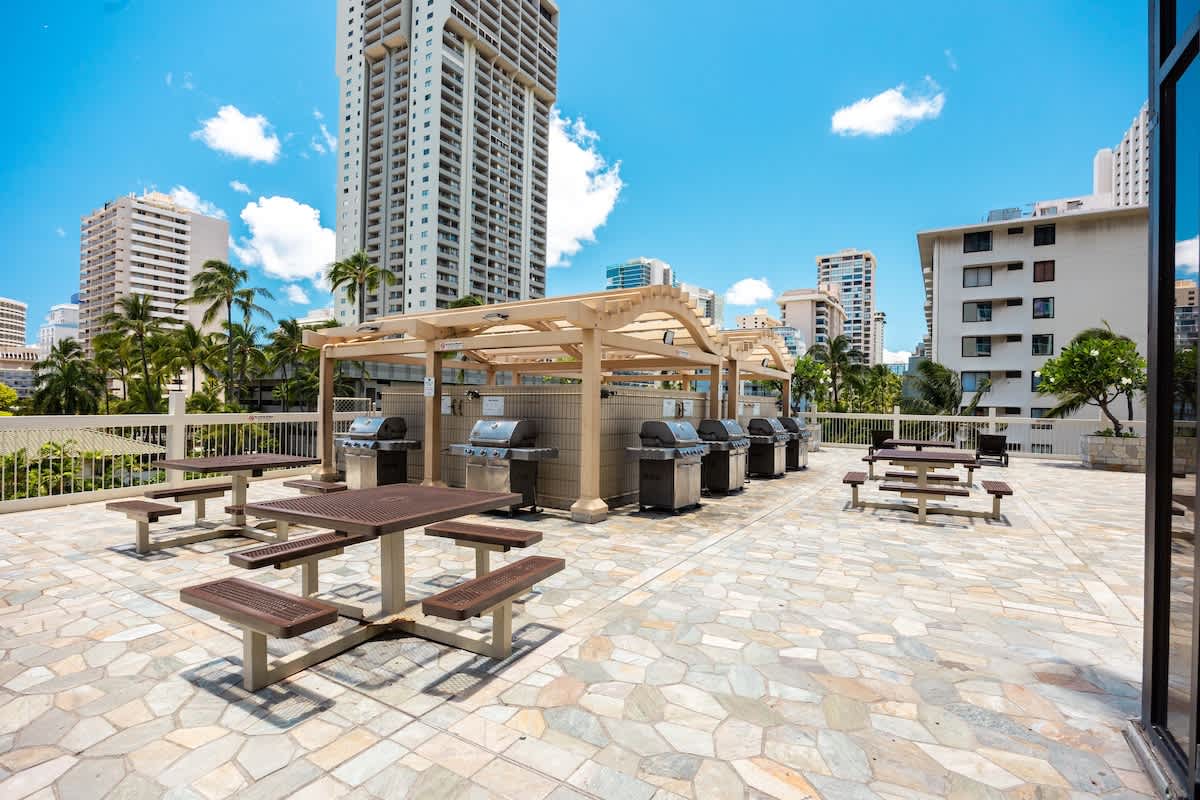 Barbecues. Subject to availability, occupants may cook on the recreation deck from 8:00 am to 10:00 pm using the installed cooking facilities. Reservations are not necessary but may be made with Security if desired.