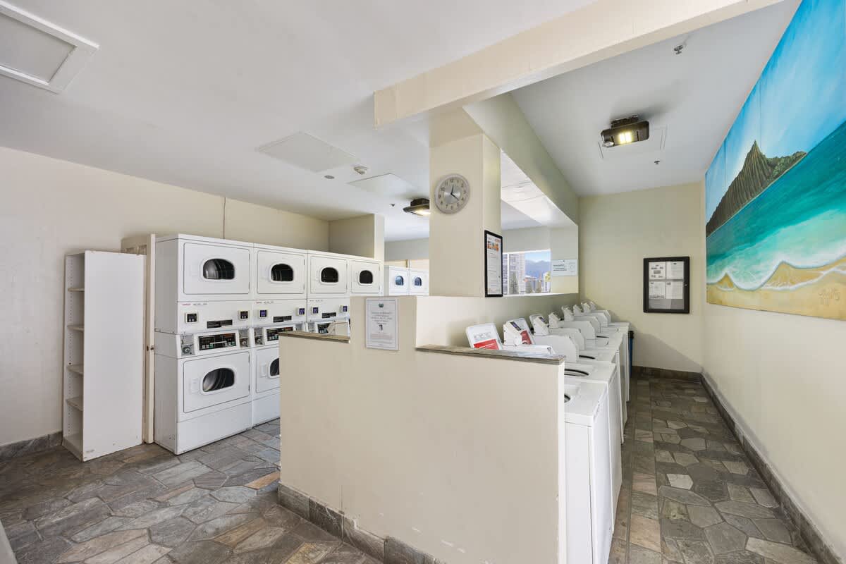 For your convenience, all linens and towels—including beach towels—are thoughtfully provided. Laundry facilities are located on the 6th floor and can be operated with coins or credit cards.
