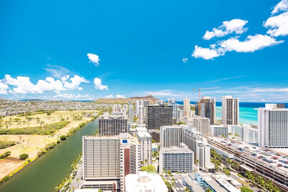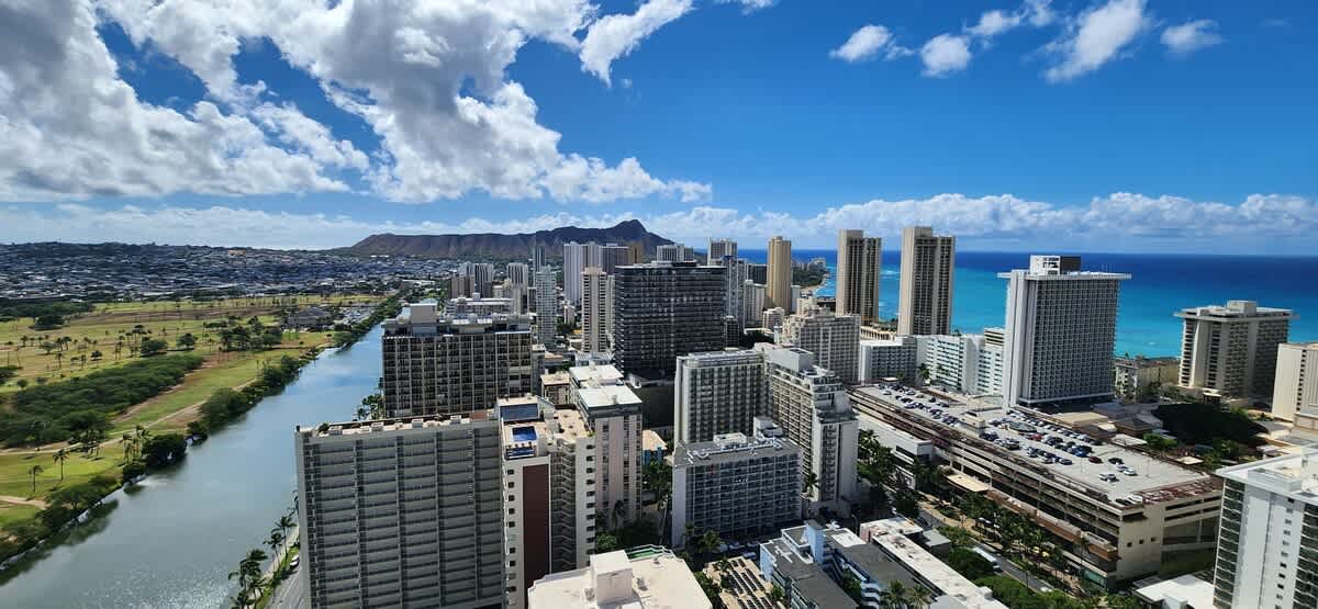 From Honolulu Airport, it is just a 20-minute drive to your destination. Rent a car to explore or grab a taxi for around $45, depending on traffic. Look for signs on the way to the taxi area upon arrival. Enjoy your trip!