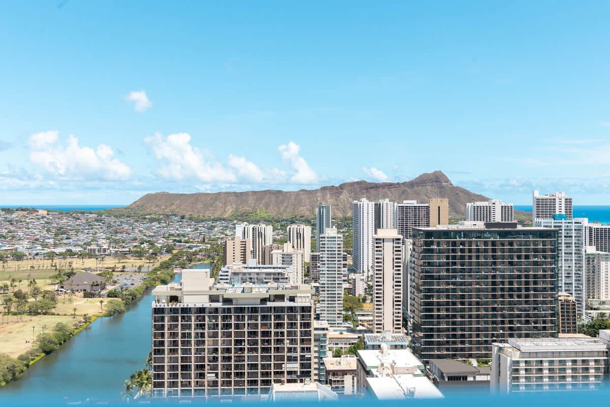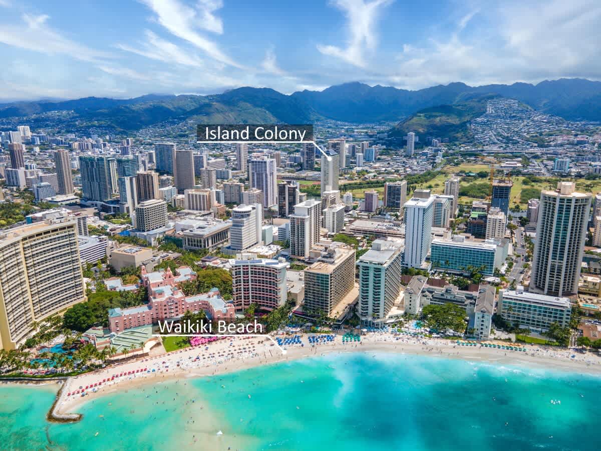 This beautifully renovated studio on the 42nd floor of Island Colony invites you to wake up to sweeping views of the ocean, the iconic Diamond Head, and the glittering Waikiki skyline—all from your private lanai and cozy living space. The unit offers 305 sq. ft. of interior space plus a spacious 116 sq. ft. lanai, giving you plenty of room to relax and soak in the island atmosphere. Just a short stroll away, the golden sands and blue waters of the world’s most famous beaches await.