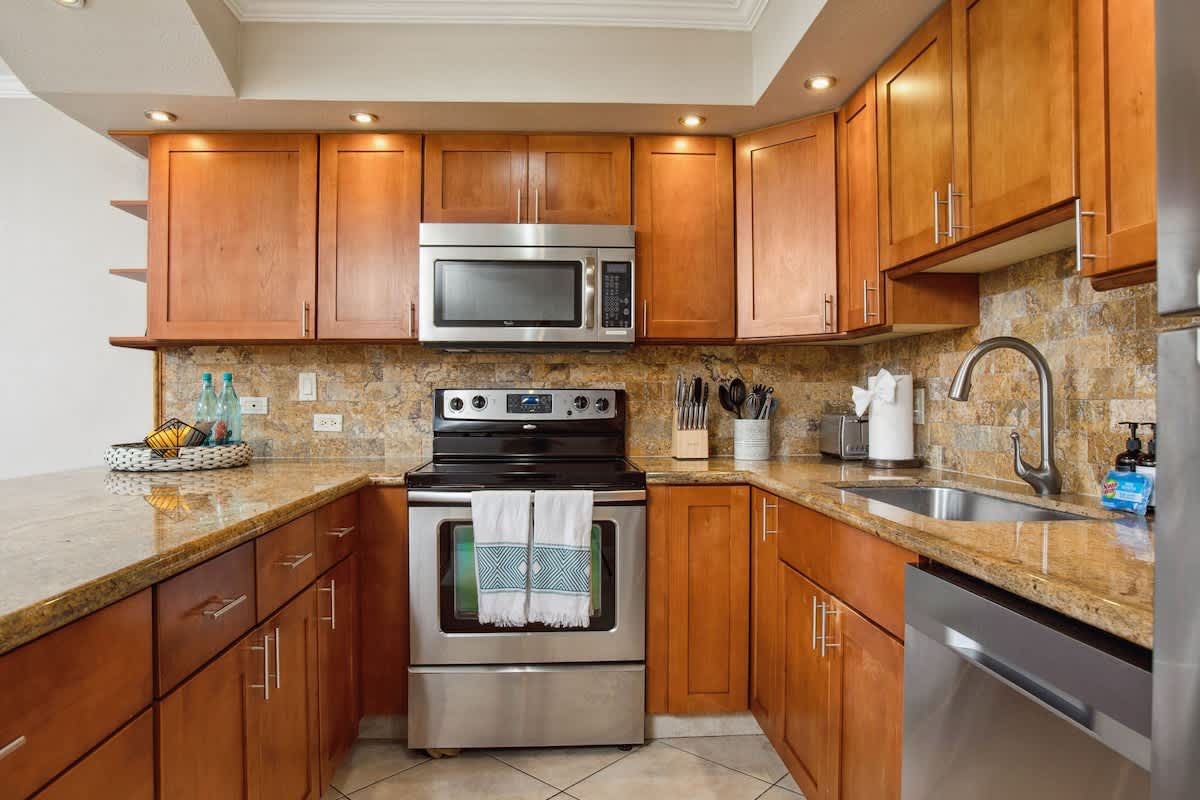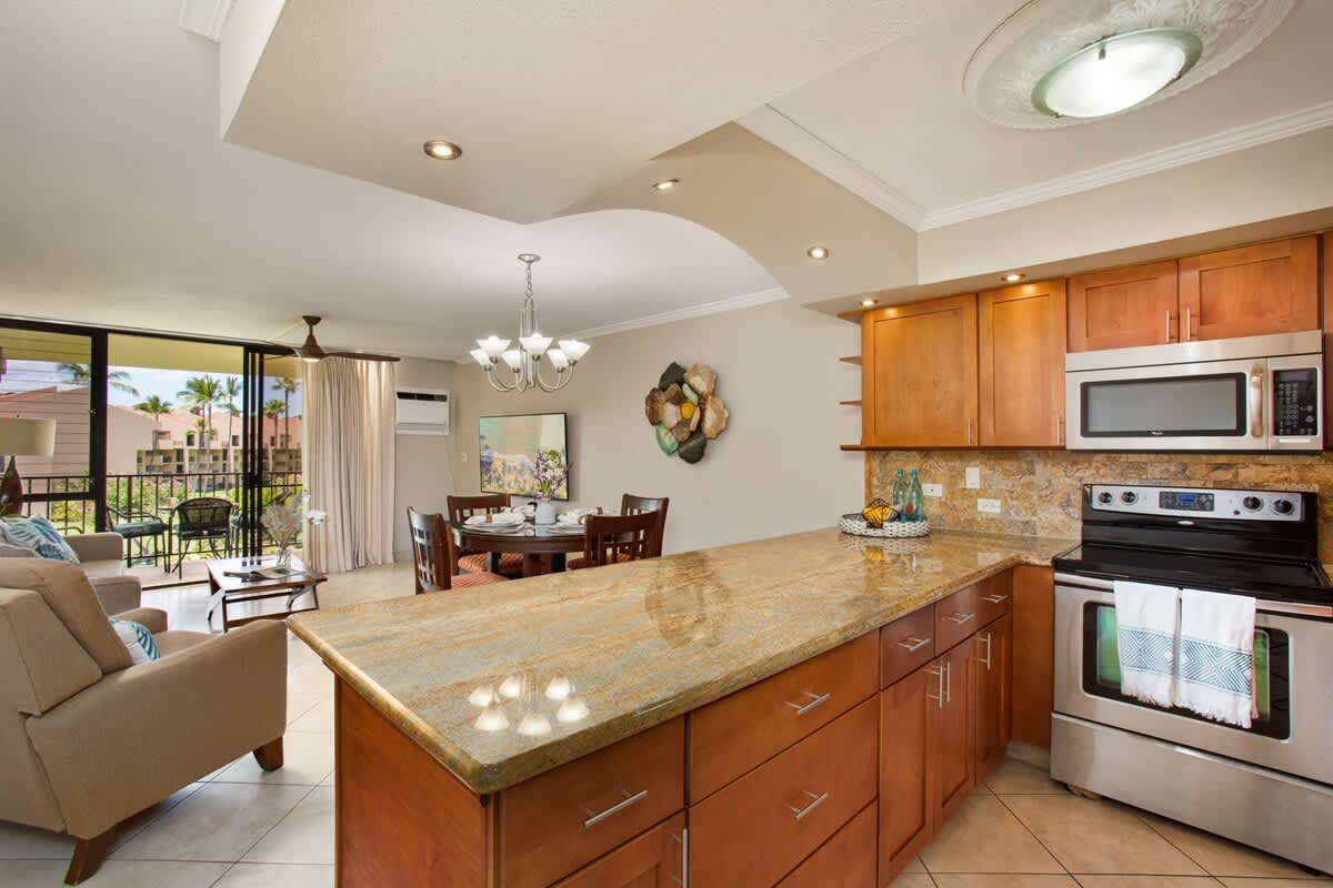 We were very excited to plan for this stay at Kamaole Sands. We had been looking forward to the trip for some time and when we arrived the accommodation was exactly as shown in pics and the view from the lanai was exceptional. We thoroughly enjoyed the unit, we like to cook our own food and the kitchen was well equipped and we were steps away from the bbqs which were spotlessly cleaned daily. We watched the sunset every night while we cooked. Bed was very comfortable and the entire unit is spacious.