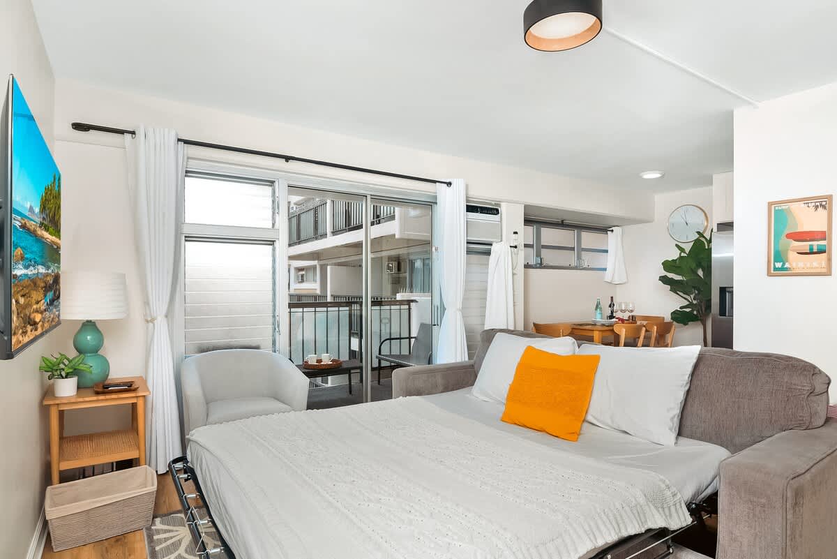 – 1 Pull-out sleeper sofa (Queen) (best suited for children or occasional use; may not offer the same comfort as a regular bed for adults)