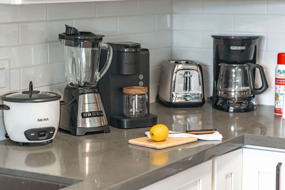 – Fully equipped with a toaster, coffee maker, rice cooker, blender, kettle, pots, pans, silverware, cookware, and dishes.