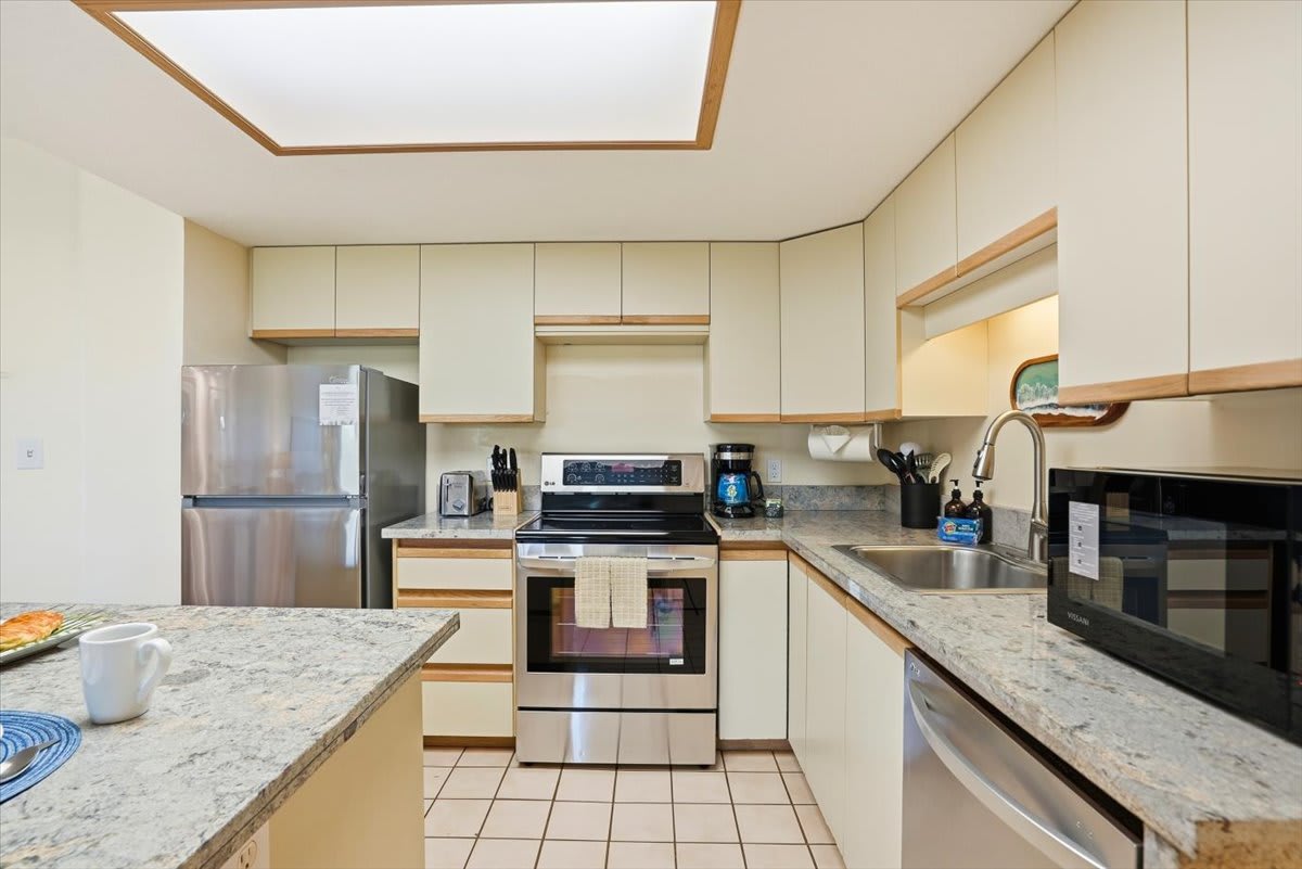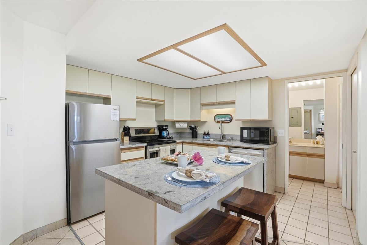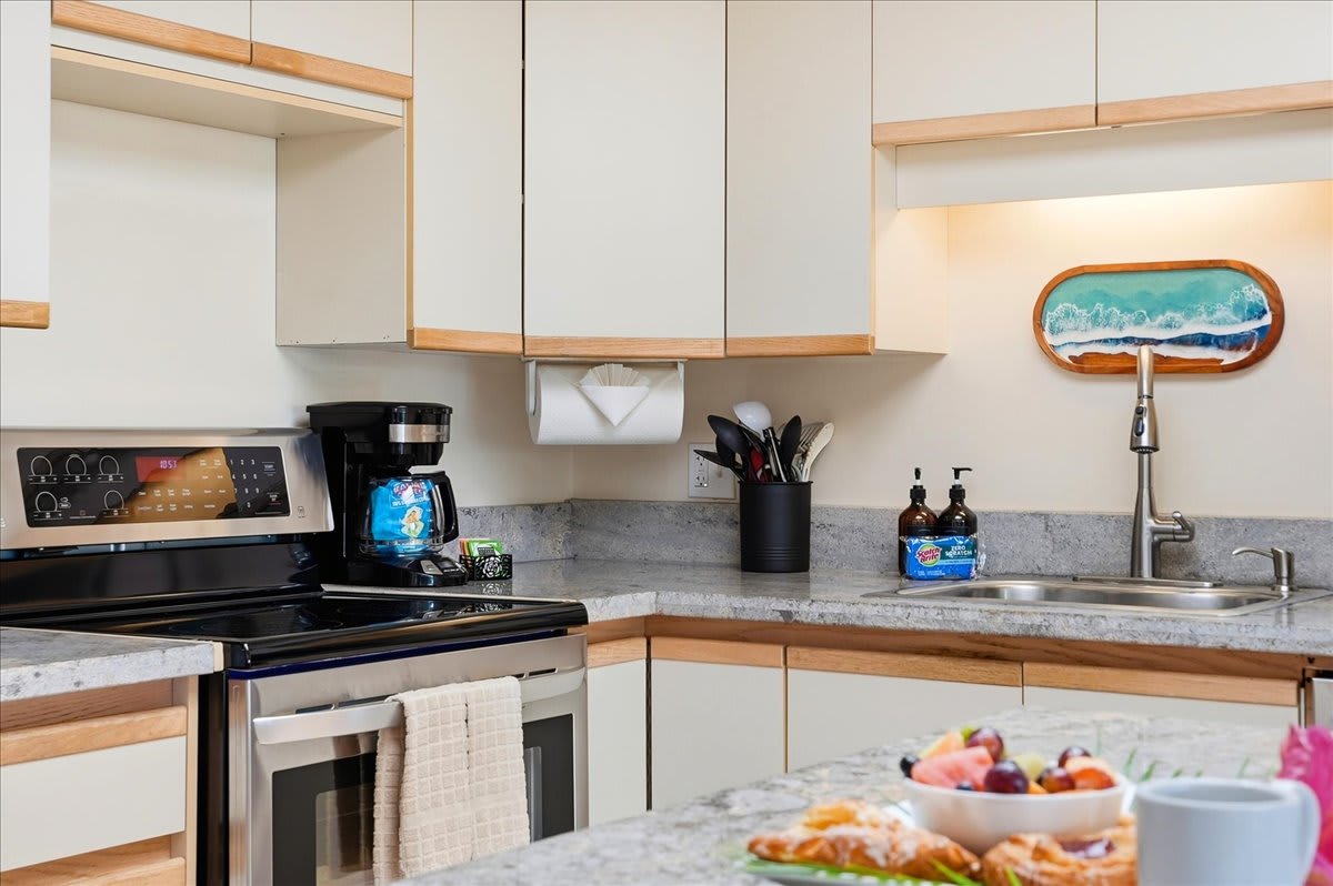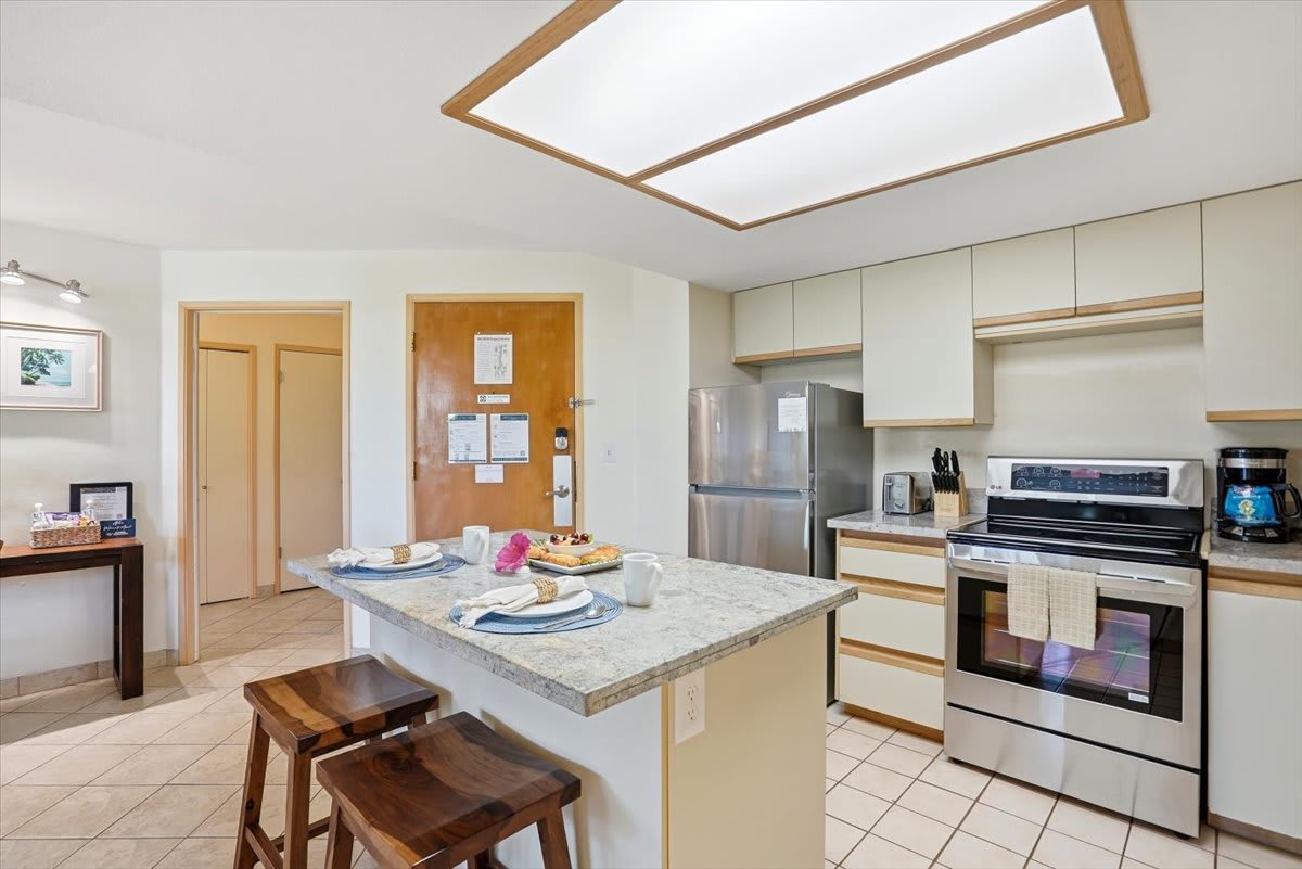 • Fully stocked with essentials, including a toaster, coffee maker, rice cooker, blender, kettle, pots, pans, silverware, cookware, and dishes—everything you need to prepare meals with ease