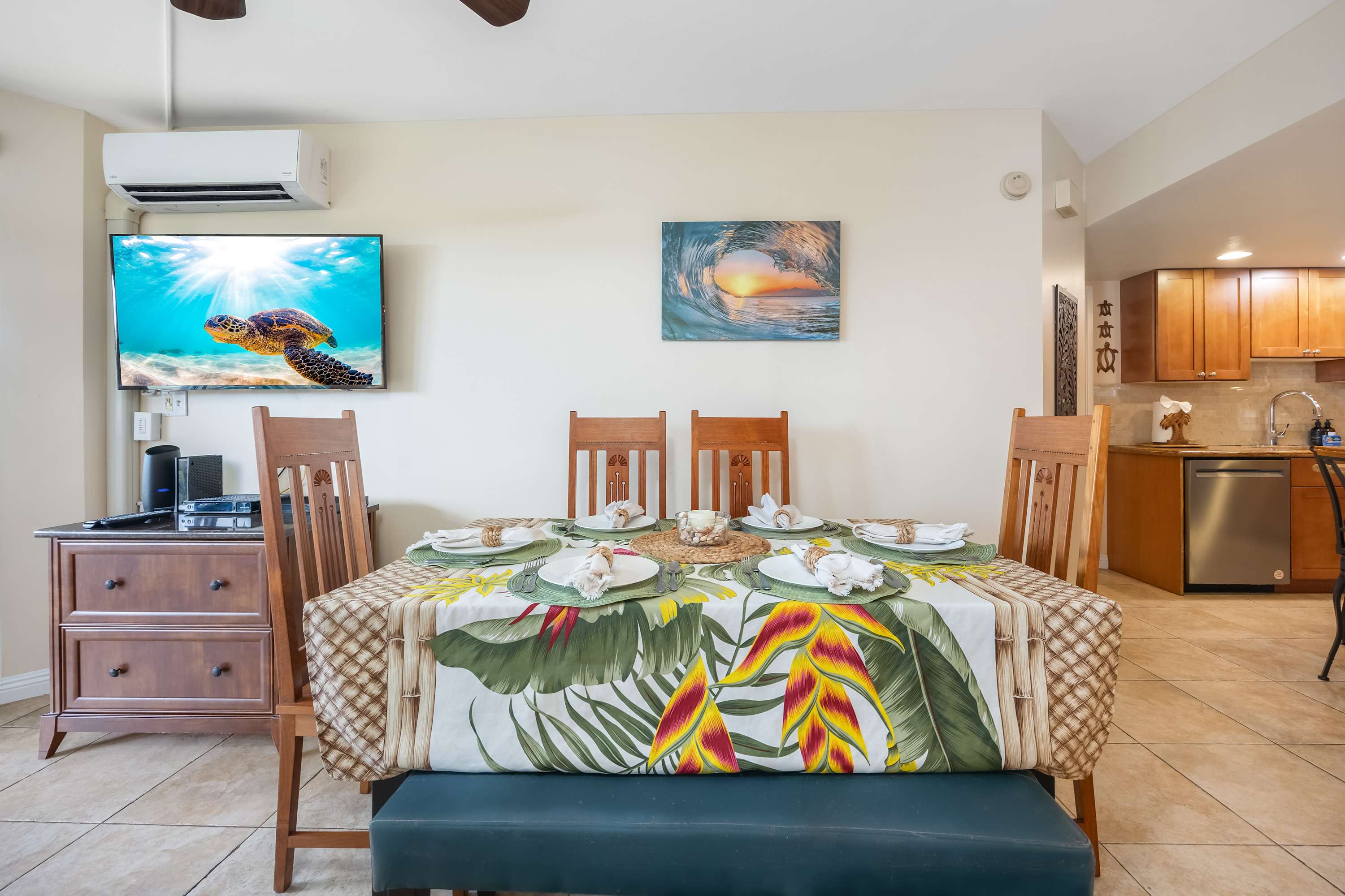 Enjoy a relaxing Maui getaway at the beautiful Maui Banyan, perfect for groups of up to 10 guests. This newly updated 3-bedroom, 3-bathroom condo offers split AC and TVs in every room, a full kitchen, an in-unit washer and dryer, free WiFi, and complimentary parking for a comfortable stay. Located just across the street from the stunning Kamaole Beach Park II, you can easily spend your days enjoying the beach. The condo is also within walking distance of popular restaurants, shops, and grocery stores, making it easy to explore and enjoy everything Kihei has to offer.