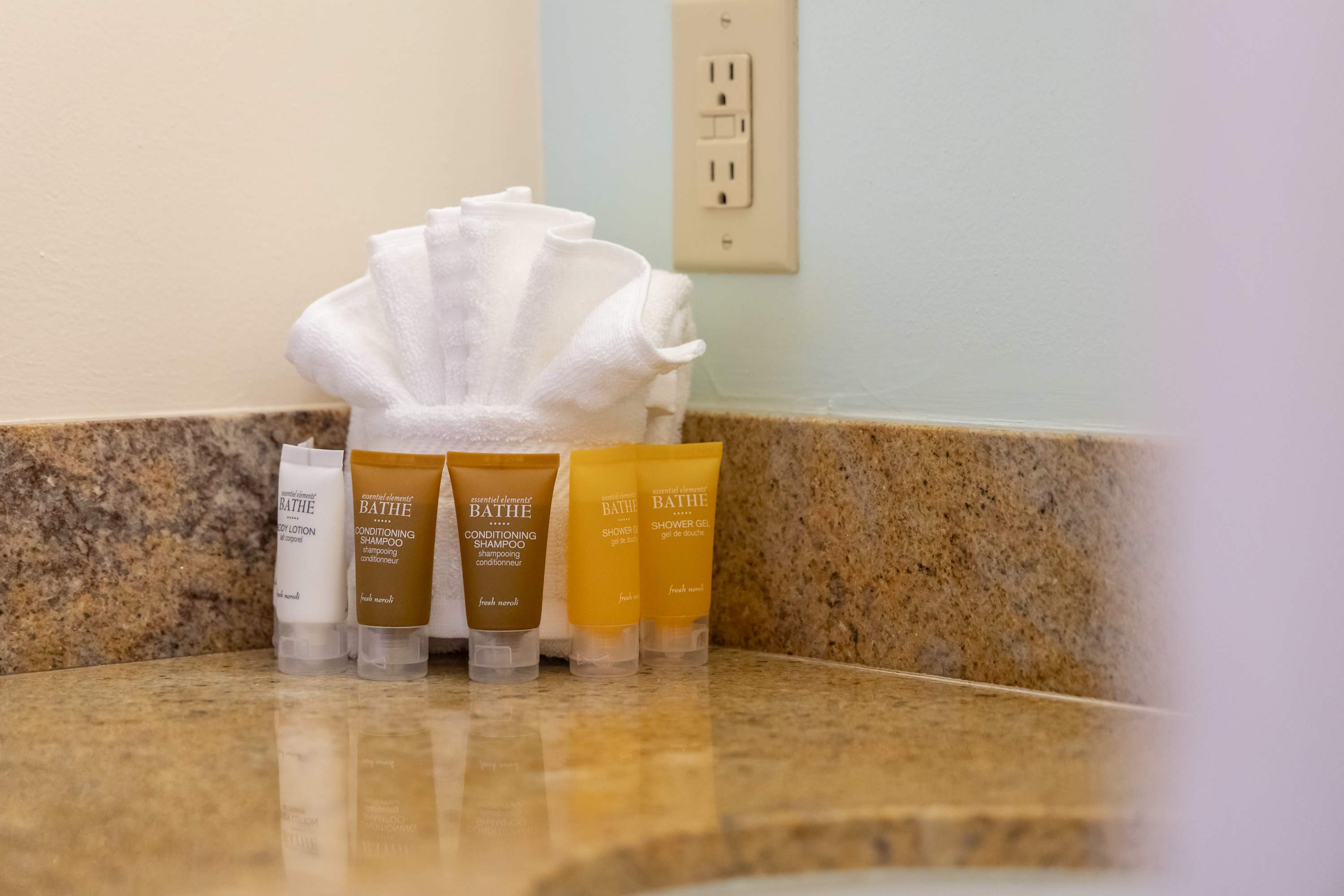 • Complimentary toiletries including shampoo, conditioner, and body wash