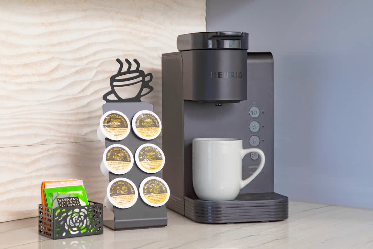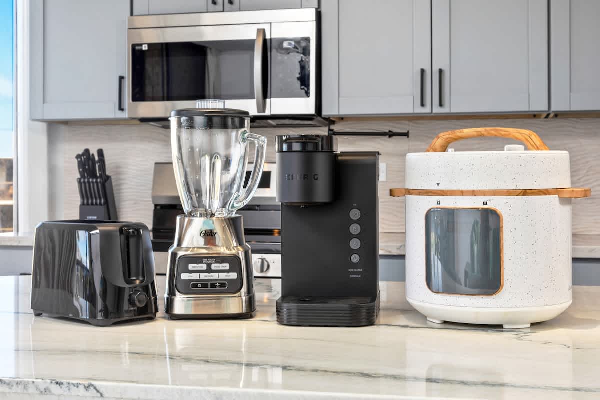 • Fully equipped with a toaster, Keurig coffee maker, rice cooker, blender, kettle, pots, pans, silverware, cookware, and dishes.