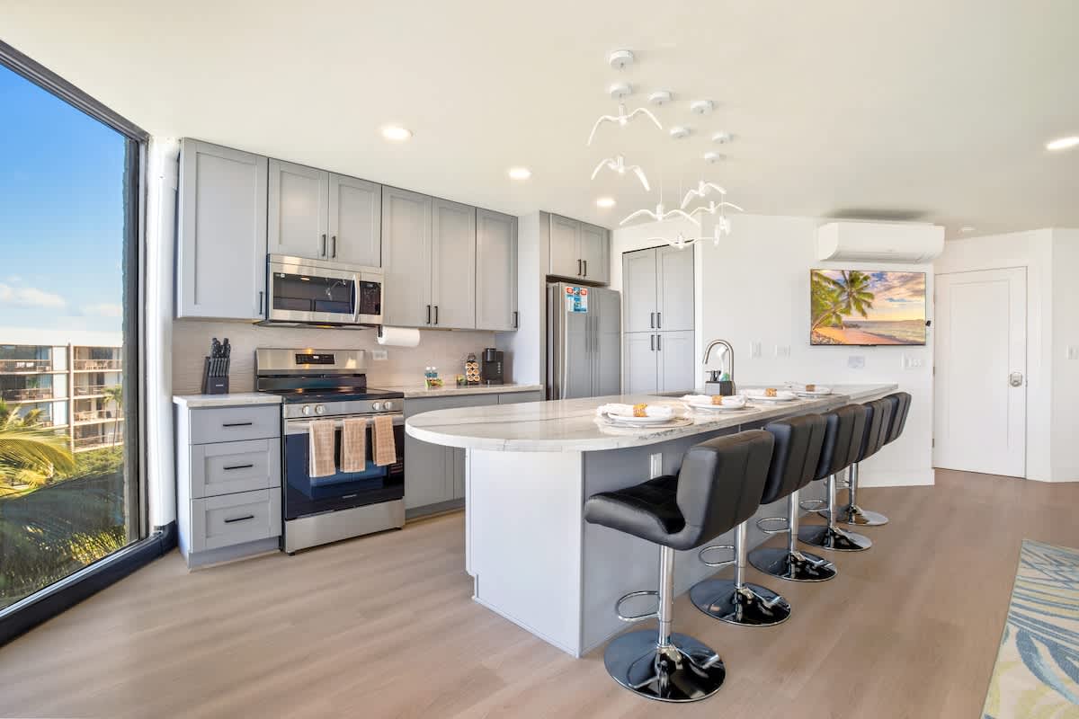 Absolutely amazing rental and experience. The renovations done to this place are first class all the way. Brand new furnishings, stocked with everything you could need. We have stayed in 3-4 different units at Maui Sunset in the past, and this was BY FAR the nicest unit we have ever stayed in. Panoramic ocean views too! Also Midway Vacations were incredibly easy and communicative. Our daughter even left her favorite stuffed animal when we checked out, and they bent over backwards to recover it for us. Cant recommend them enough. Great job!
