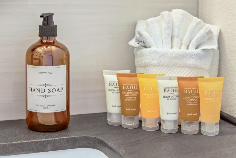 • Complimentary toiletries including shampoo, conditioner, and body wash