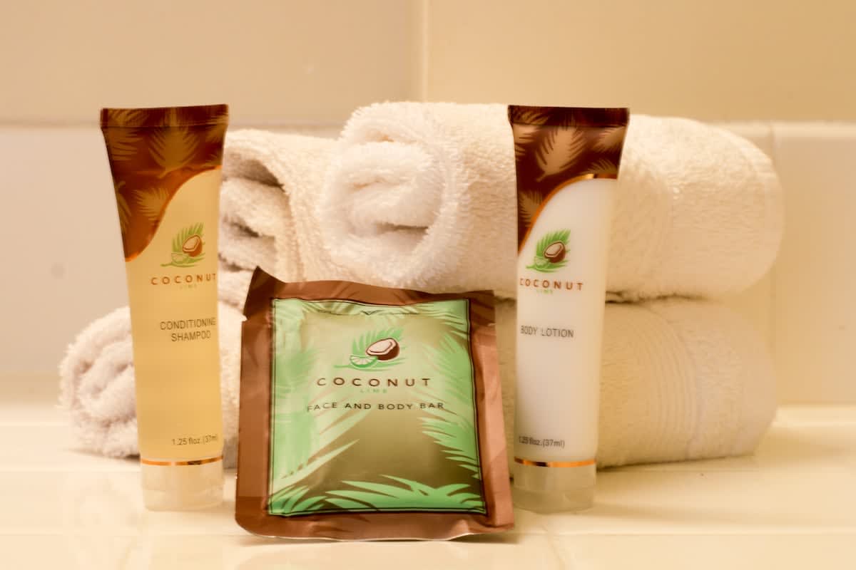 – Start-up supplies: coffee filters, Welcome coffee pack, salt & pepper, laundry detergent, dish soap, sponge, hand soap, 1 oz. of shampoo and body lotion, bar soap, toilet paper, paper towels, tissue, and basic cleaning supplies.