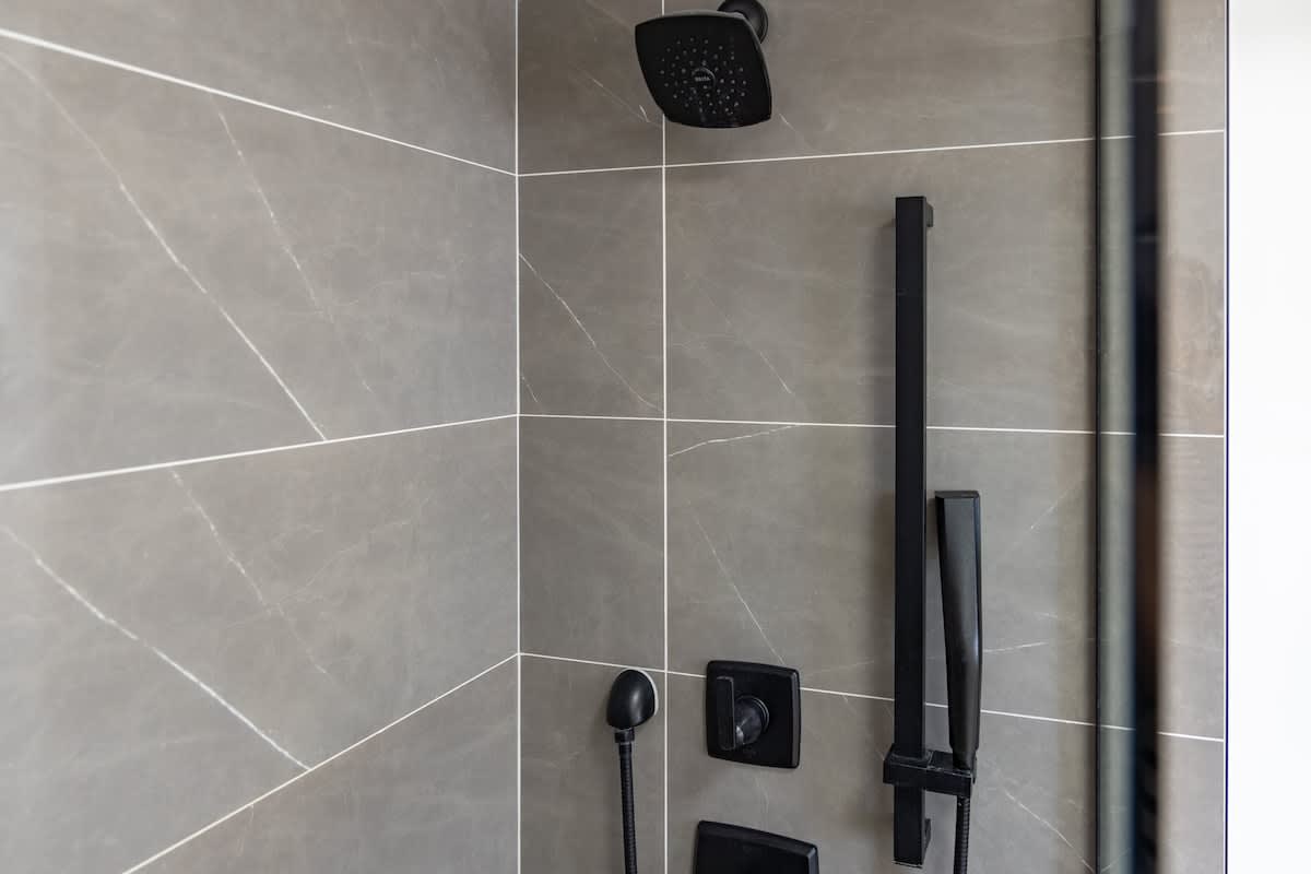 – Walk-in shower with a hand-held shower wand