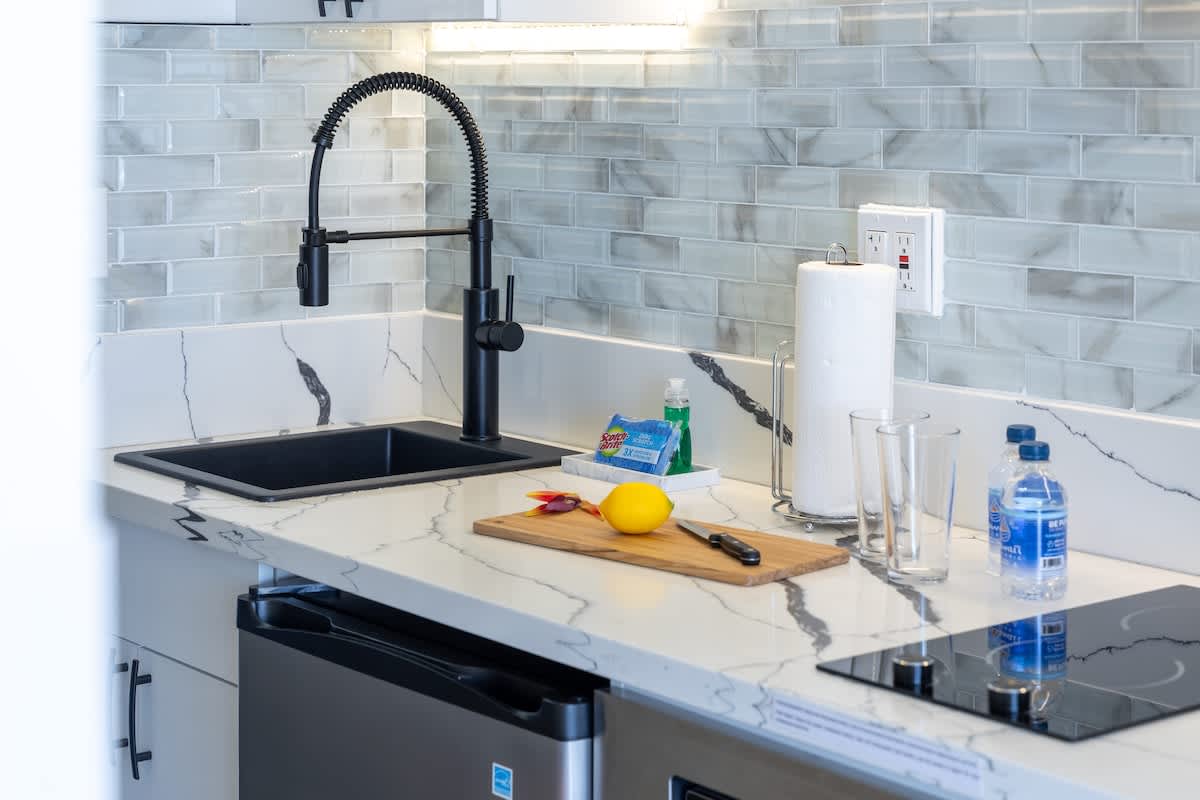 Designed for your convenience and comfort, the split air-conditioned unit features an open floor plan with a well-equipped kitchenette, including a mini-fridge, double burner hot plate, microwave with power convection oven, Keurig and drip coffee maker, toaster, and all the essentials. Upgraded to a Split AC unit, enjoy a quieter and more powerful cooling experience compared to standard window units. The studio boasts a California king-size bed, a cozy lounge sofa, and a top-notch 65″ Samsung Smart TV with cable, and fast Wi-Fi internet (250/250).