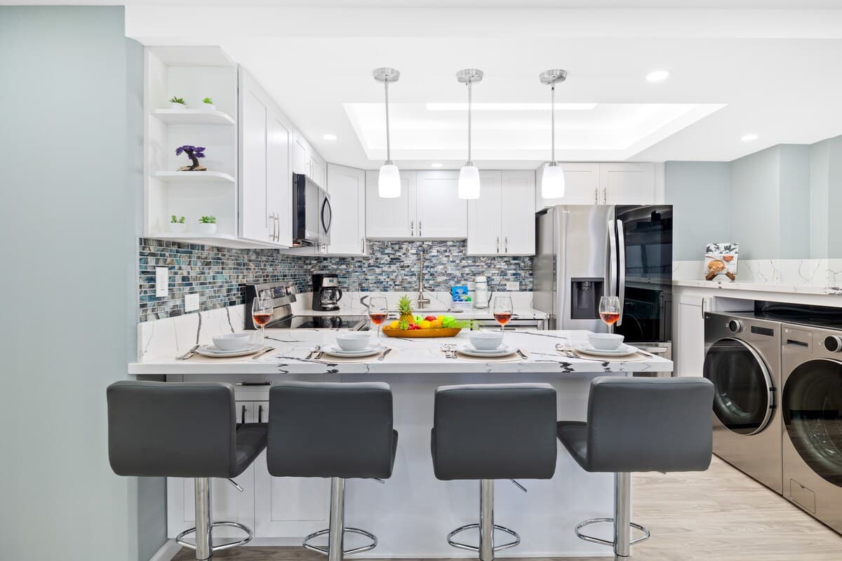 Beautiful modern condo that is located just a few blocks from the beach with parking. This was an ideal spot for my family of 2 adults and 3 children. Would definitely stay at this location again.
