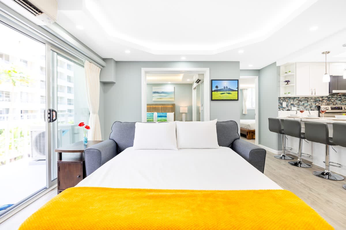 Experience paradise in our exquisitely renovated 2-bedroom, 2-bathroom unit, comfortably accommodating 6 guests, brought to you by Midway Vacations. Enjoy the convenience of complimentary parking and unparalleled proximity to the world-famous Waikiki Beach, as well as an array of tantalizing restaurants and charming shops. Your dream vacation starts here!