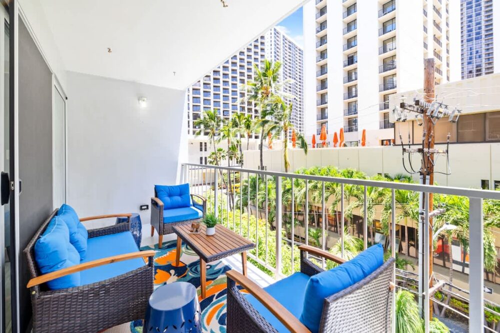 Step out onto your private lanai and savor a cup of morning coffee as you take in the vibrant neighborhood views. It’s the perfect spot to start your day or unwind in the evening, immersing yourself in the beauty of your surroundings.