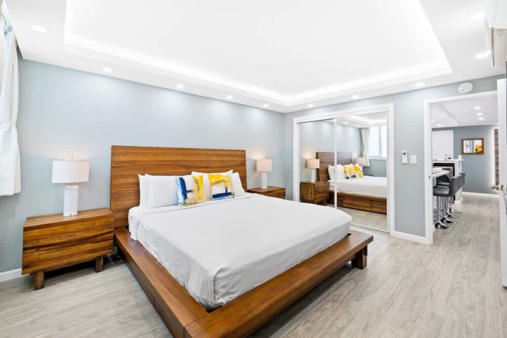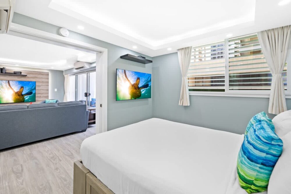 With 2 bedrooms, this unit comfortably accommodates up to 6 people. The master bedroom beckons you with a luxurious king-size bed, complete with a flat-screen TV for your entertainment pleasure. The second bedroom features a cozy queen-sized bed and a flat-screen TV as well. Each bedroom comes with its own bathroom, equipped with a shower, ensuring privacy and convenience for all guests.