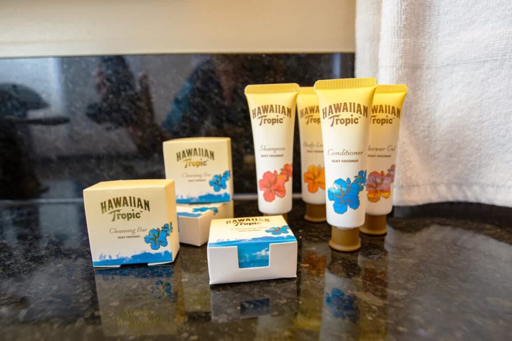 – Your very own Aloha Pack: coffee filters, salt and pepper, laundry detergent, dish soap and sponge, hand soap, shampoo/body wash/lotion set, toilet paper, paper towels, tissues, and cleaning supplies.
