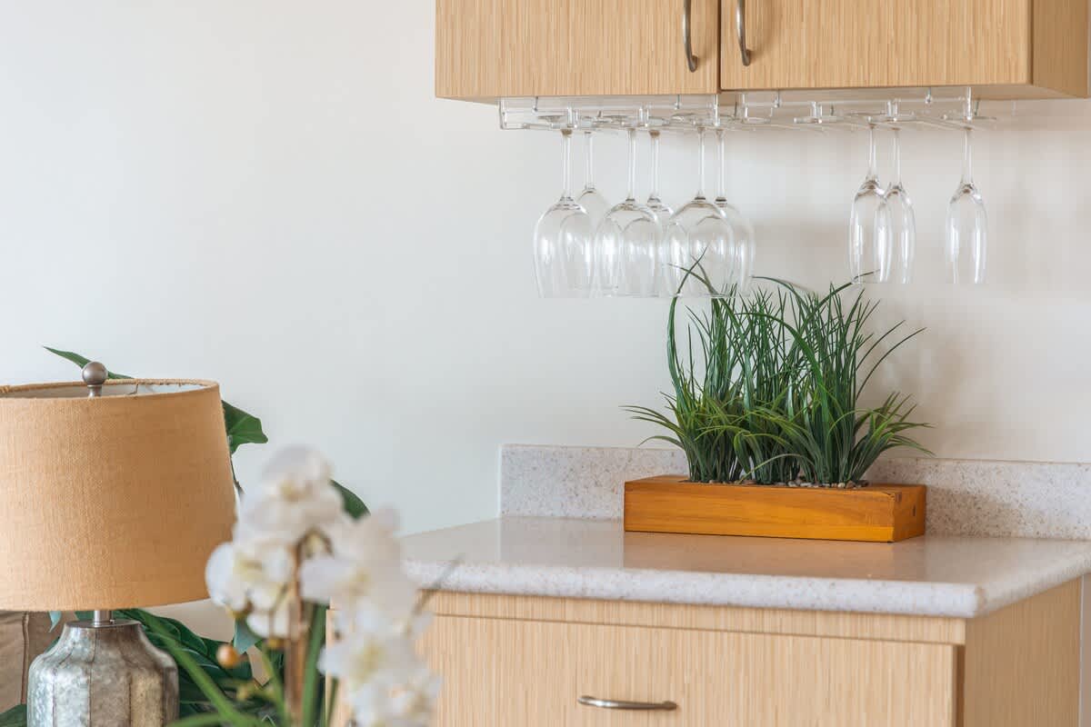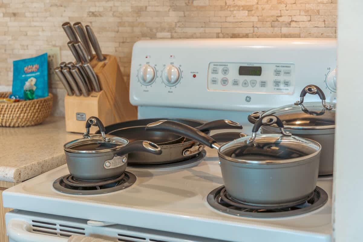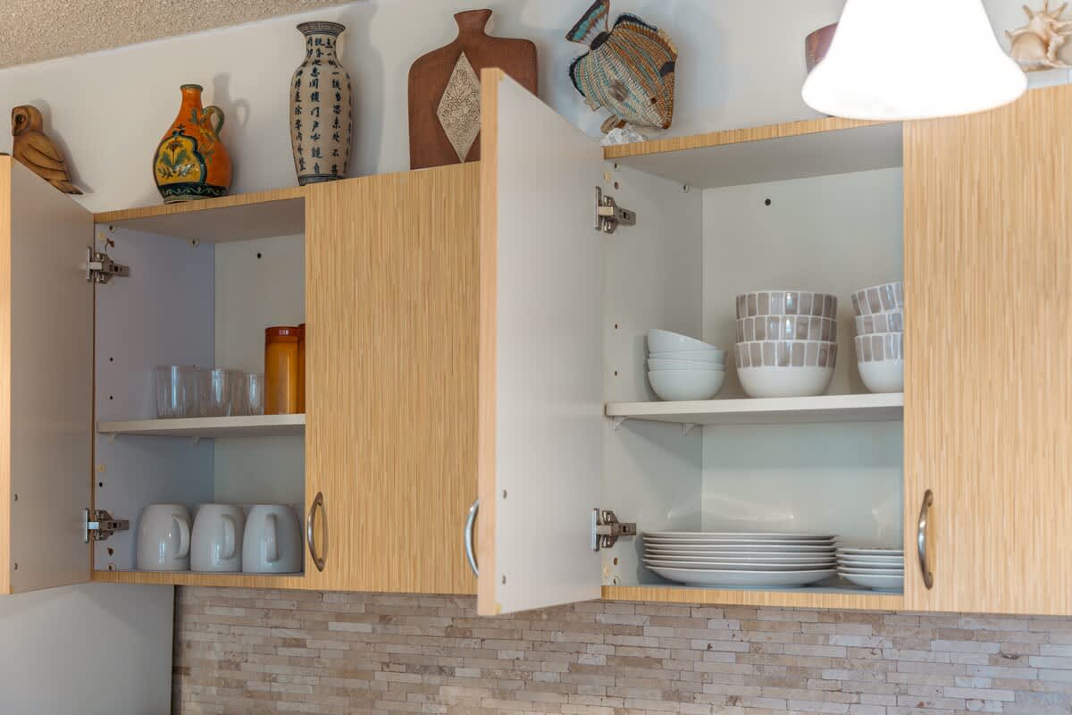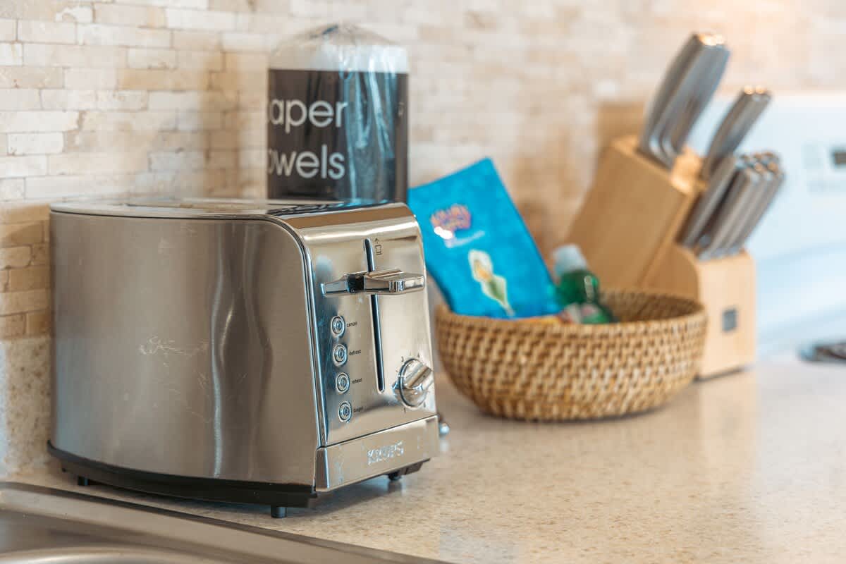 • Fully equipped with a toaster, coffee maker, rice cooker, blender, kettle, pots, pans, silverware, cookware, and dishes.