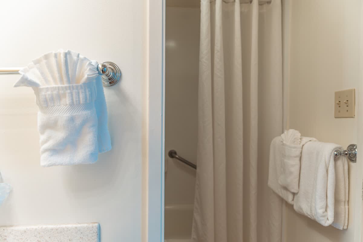 • Fresh bath towels, hand towels, and washcloths provided (one set per guest)