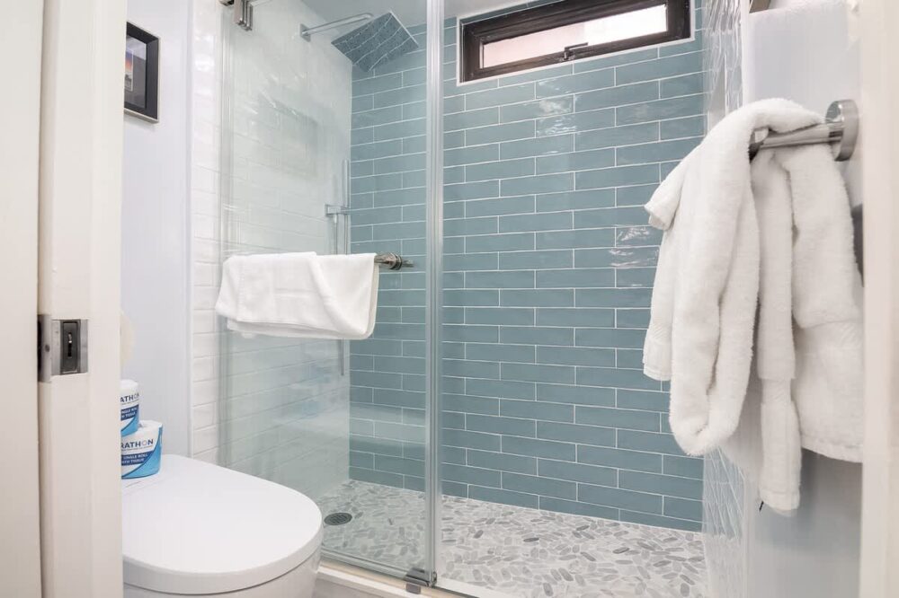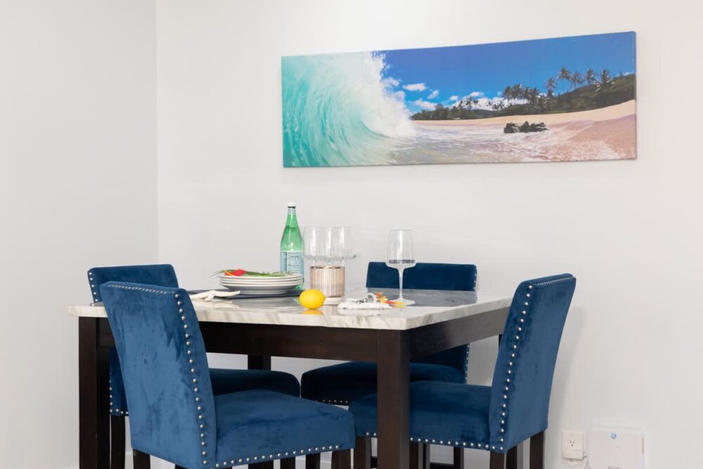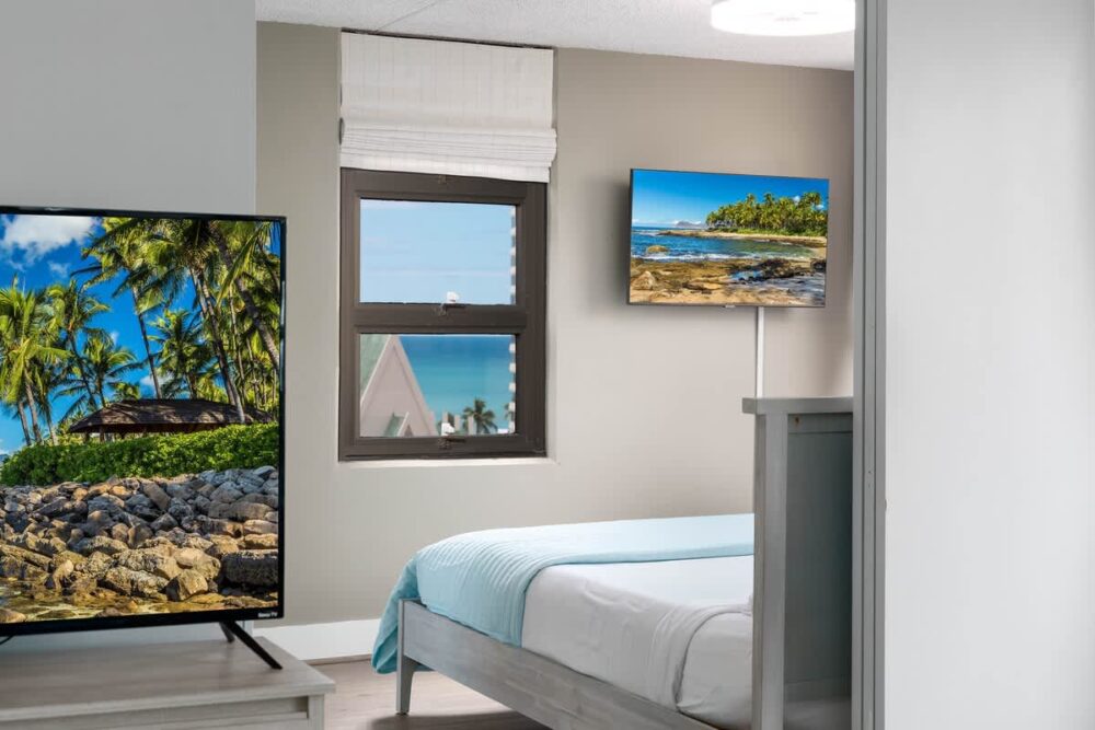 For your ultimate convenience and relaxation, this air-conditioned unit boasts an open floor plan and a fully equipped kitchen, complemented by a dining table seating up to 4 guests. The bedroom offers a luxurious King-size bed and a 41″ Smart TV perfect when relaxing, while the living area boasts a queen-size pull-out sleeper sofa and a 50” Smart TV. To top it all off, a newly renovated full bathroom with walk-in shower adds to the comforts of this space!
