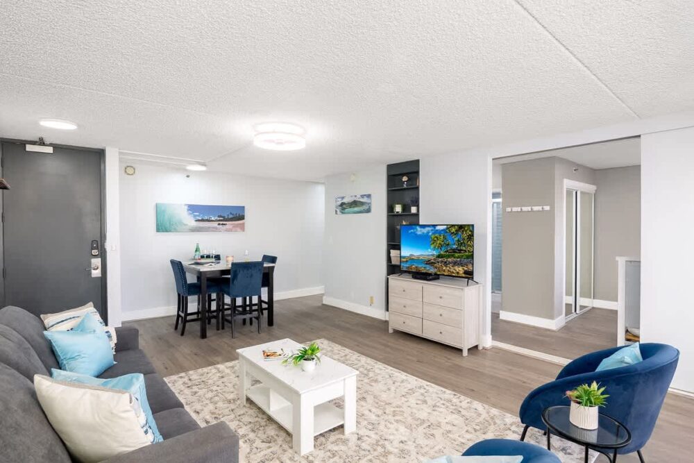 Newly renovated 1-bedroom corner unit at the Condominium Hotel Waikiki Banyan brought to you by Midway Vacations! Sleeps 4 guests and is conveniently close to Waikiki Beach, great shopping spots, and fantastic restaurants. Plus, it comes with free parking and high-speed wireless internet. You’ll even get to enjoy the city and partial ocean views!