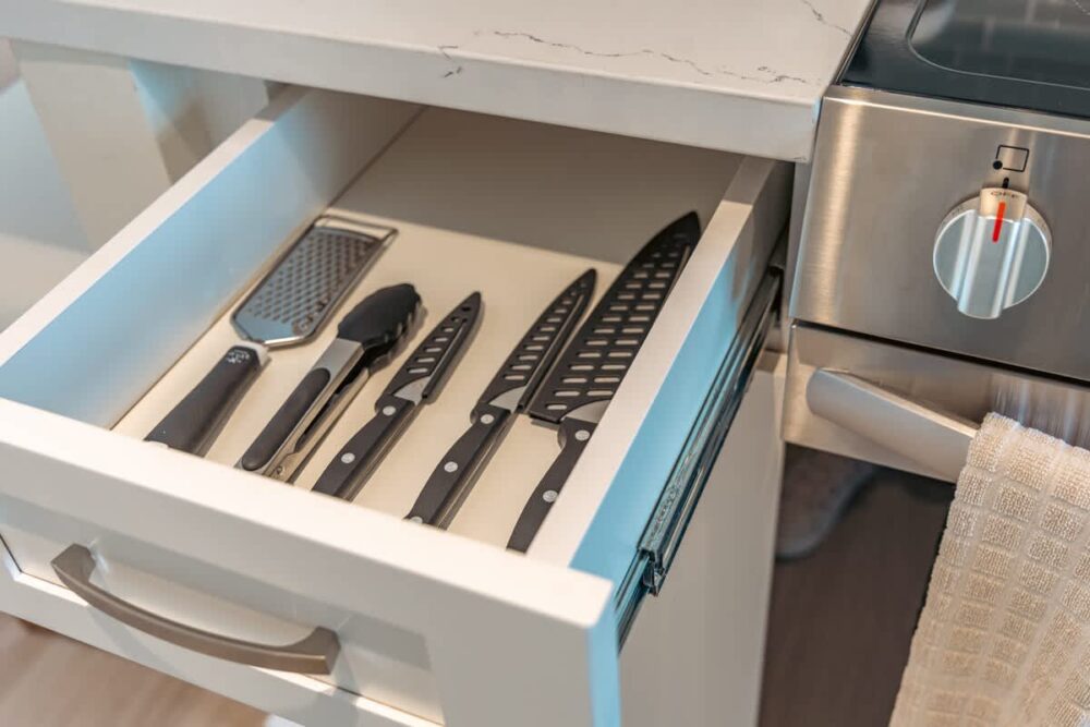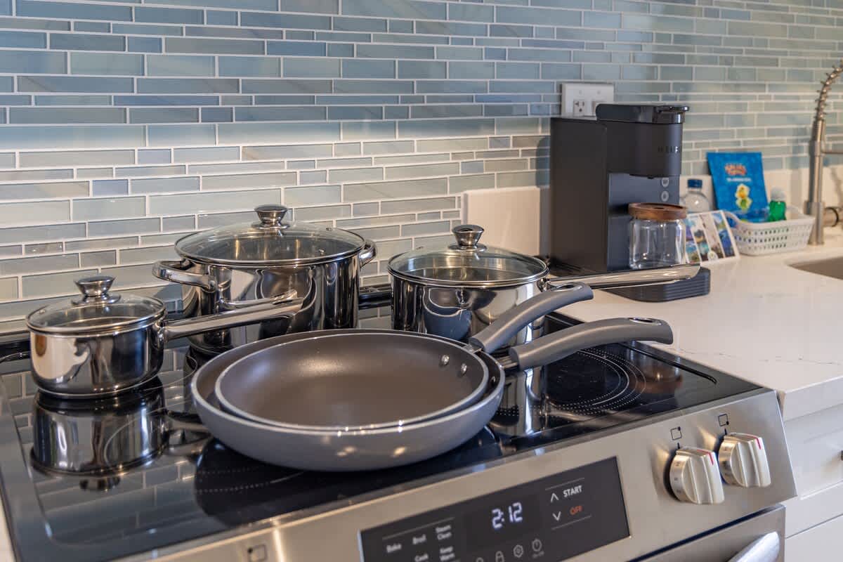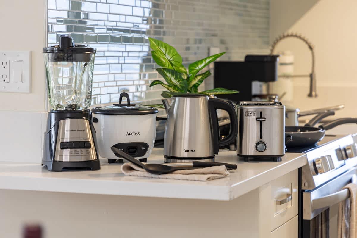 – Fully equipped with a toaster, coffee maker, rice cooker, blender, kettle, pots, pans, silverware, cookware, and dishes.