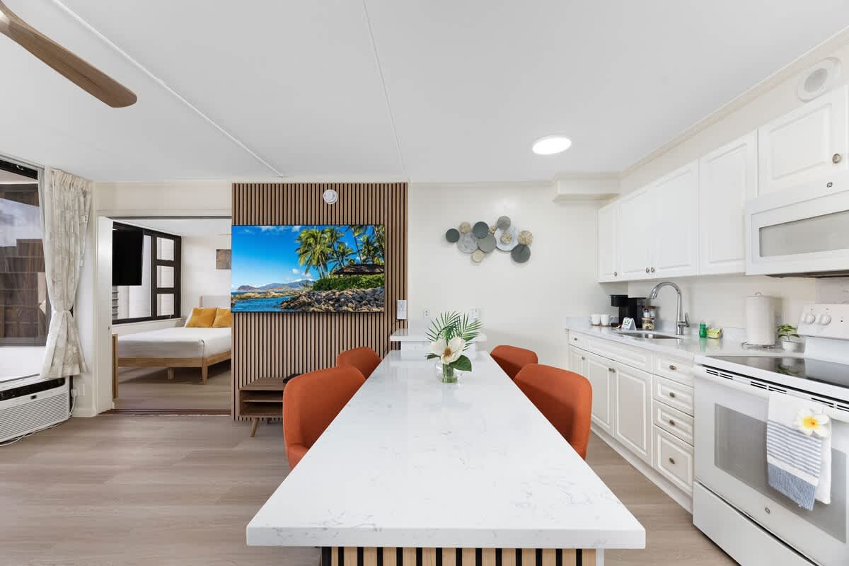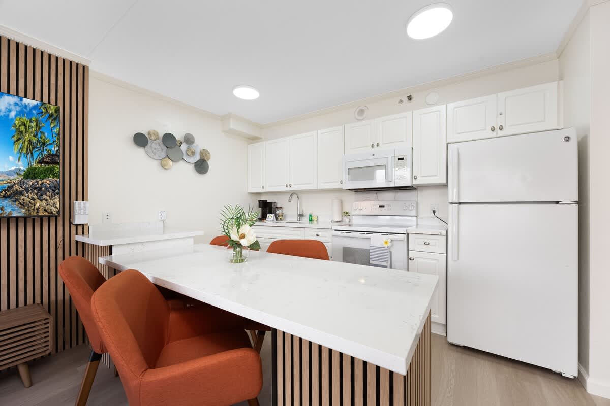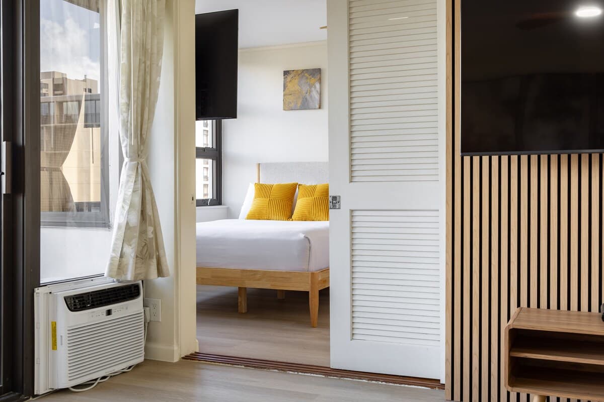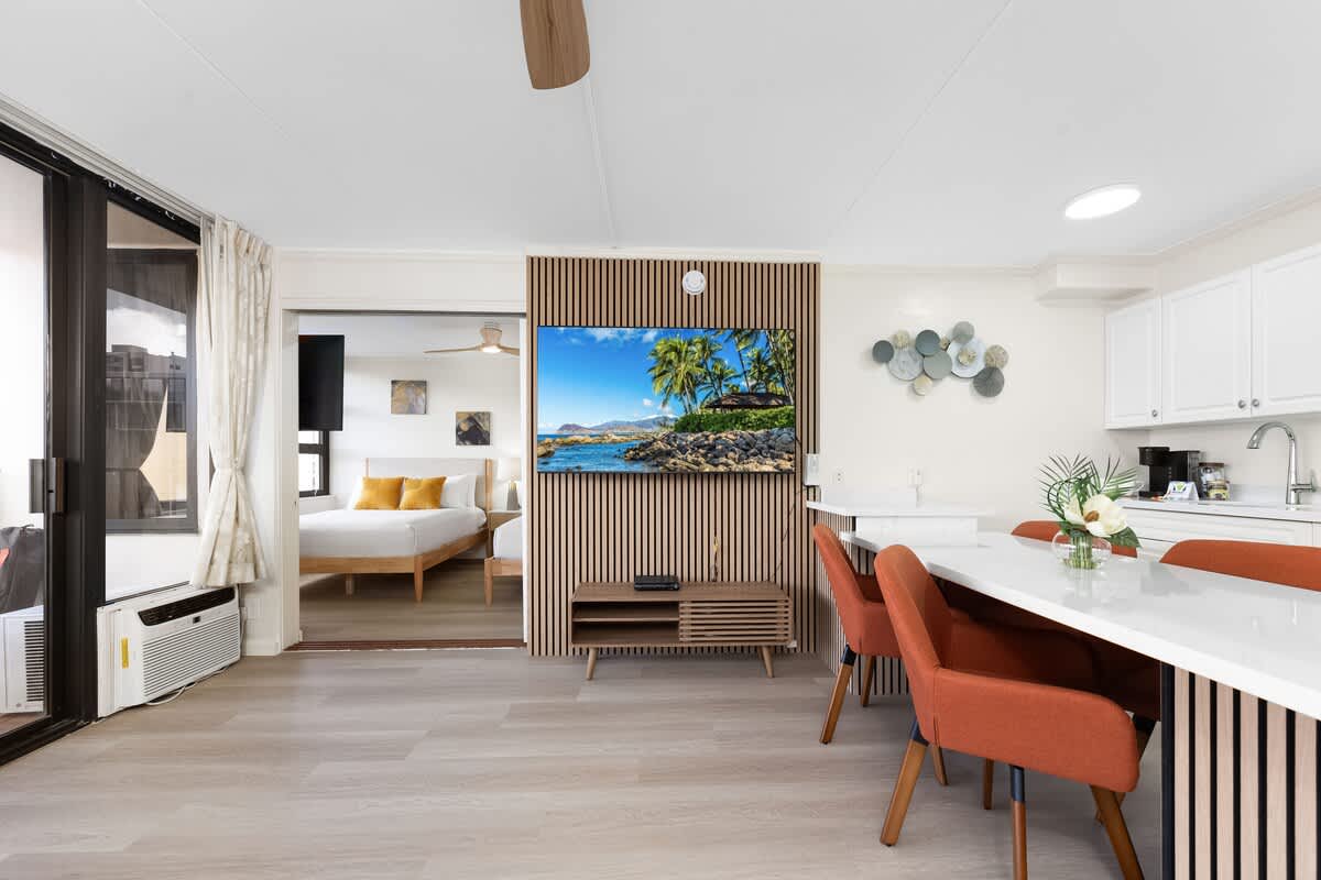 We stayed here with my husband and our children. It was an easy walk to Waikīkī beach and restaurants. Good area, the banyan breeze coffee downstairs has amazing coffee and breakfast sandwiches. There is also a minimart that is open later until 10pm so if we needed last minute items it helped. Would definitely come back.