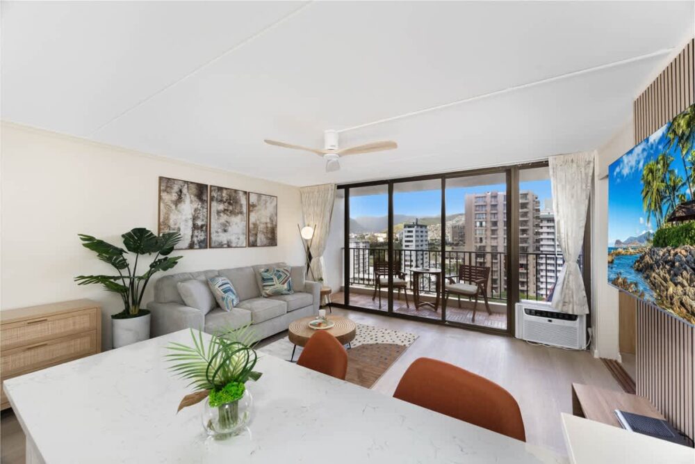 Welcome to your perfect Hawaiian getaway! This 1-bedroom condo in Waikiki Banyan Tower 2 (Mauka) is thoughtfully designed for families and friends alike. Wake up to breathtaking mountain views from your private balcony, where you can relax and soak in the natural beauty of the island.