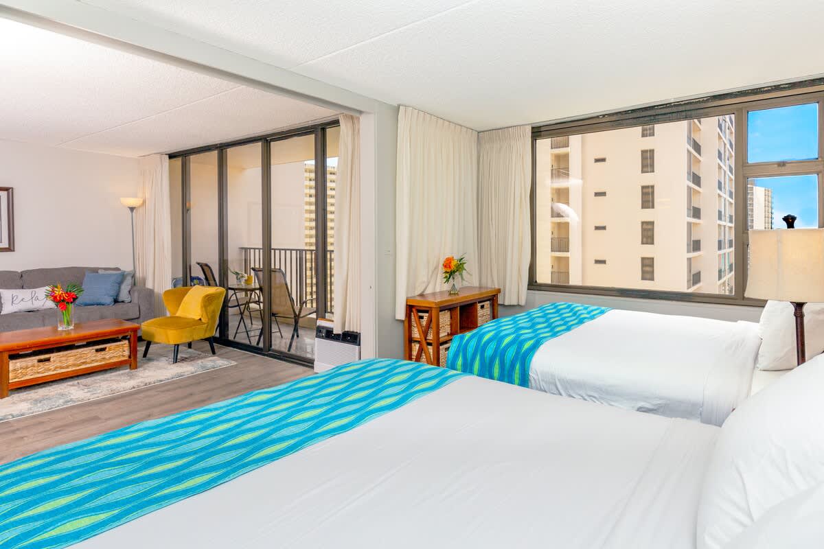 Beautiful one-bedroom condo brought to you by Midway Vacations on the 18th floor of the family-friendly Waikiki Banyan, sleeps 4, with stunning ocean views. Located just a block away from the renowned Waikiki Beach, international restaurants, and shopping centers, this unit provides the perfect blend of convenience and leisure. Embrace the added perks of complimentary parking and high-speed wireless internet ensuring a delightful and seamless stay!