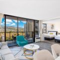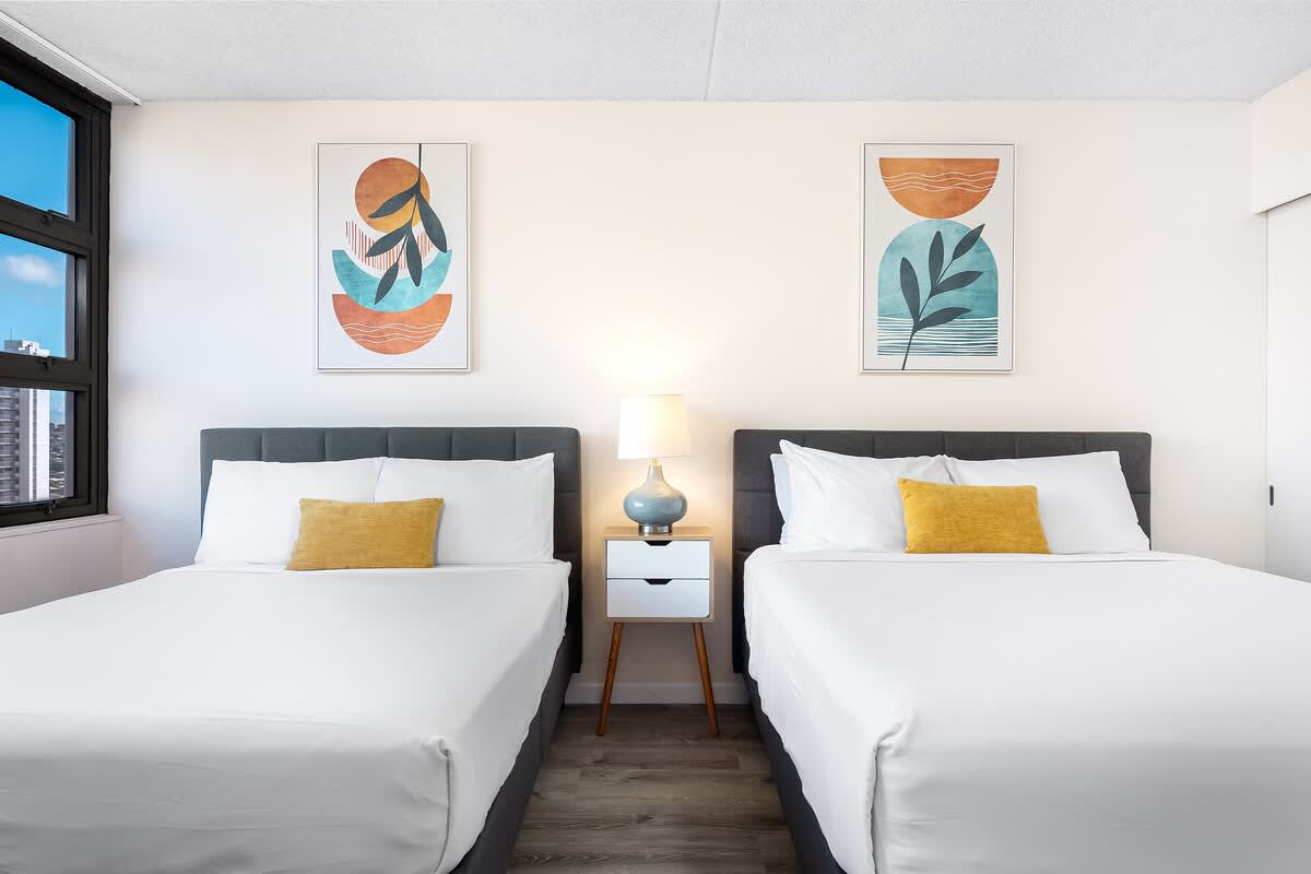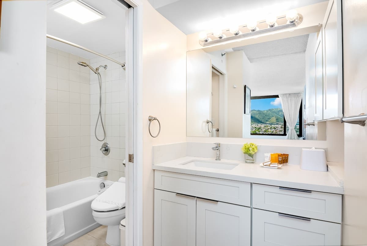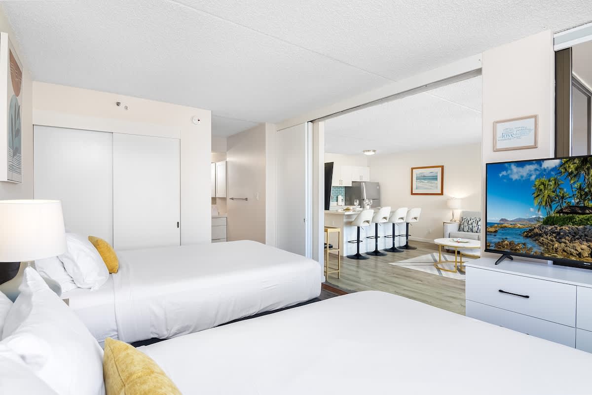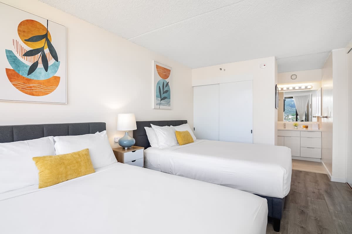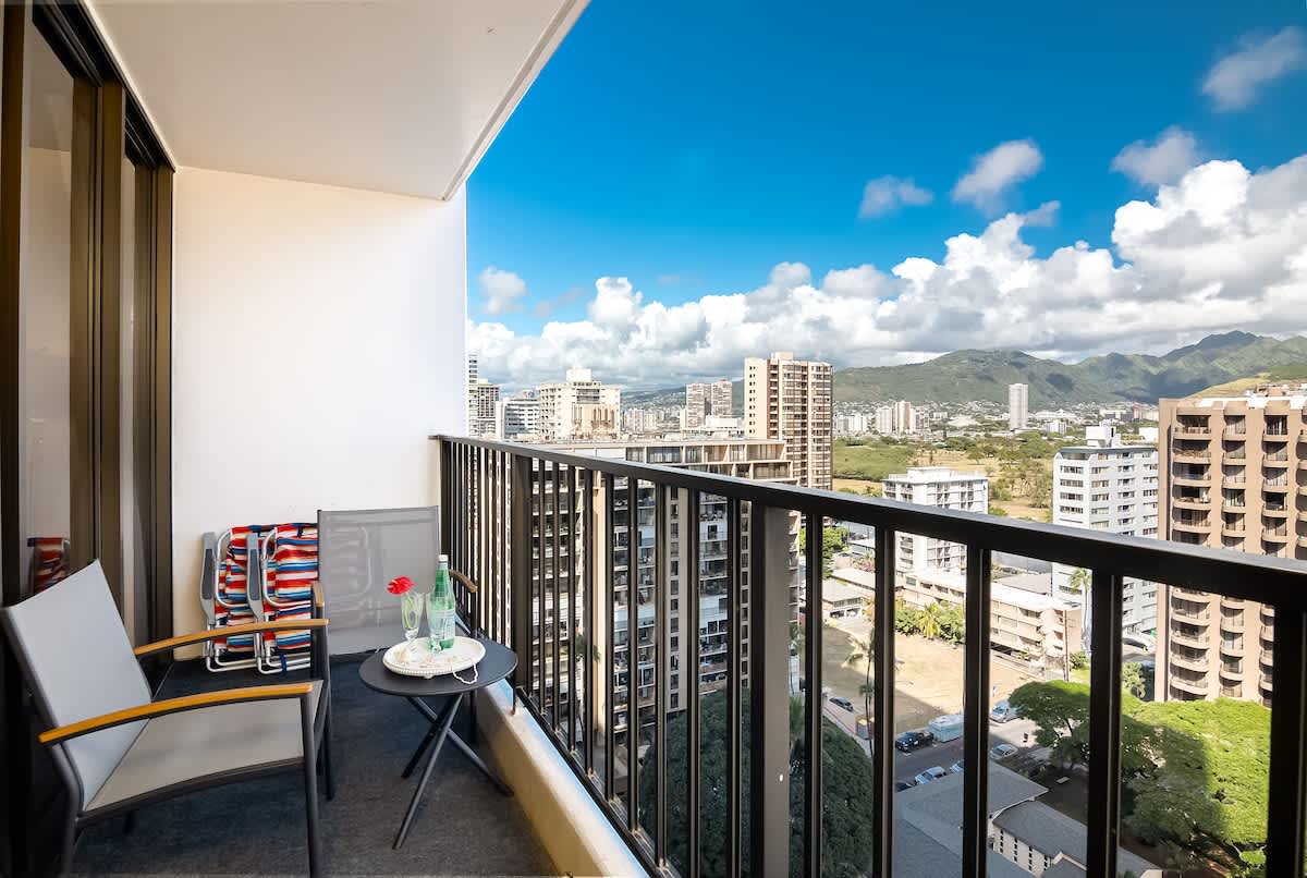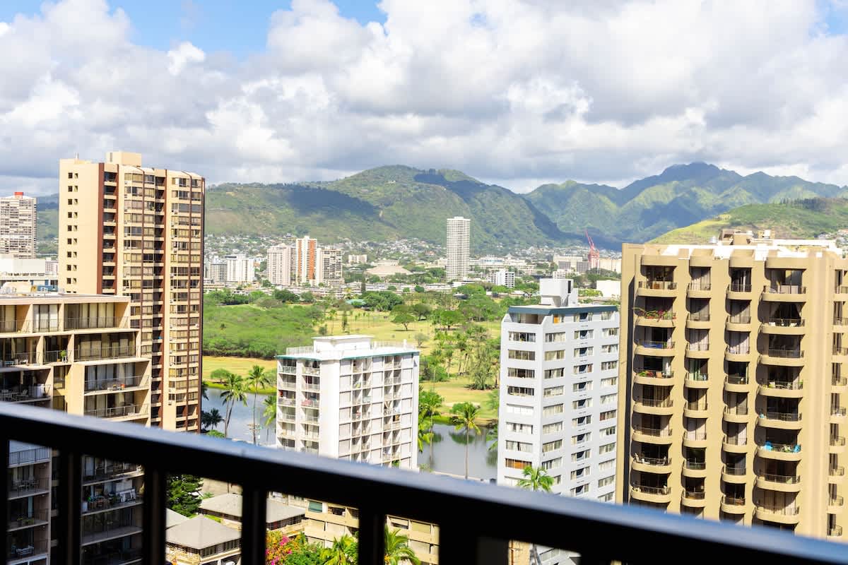 Great 1-bedroom condo at the Waikiki Banyan brought to you by Midway Vacations, perfect for up to 4 guests! You can easily stroll to the renowned Waikiki Beach, nearby shopping spots, and delightful restaurants. Enjoy complimentary high-speed wireless internet and parking during your stay and savor the stunning mountain and city views from both the bedroom and the balcony!