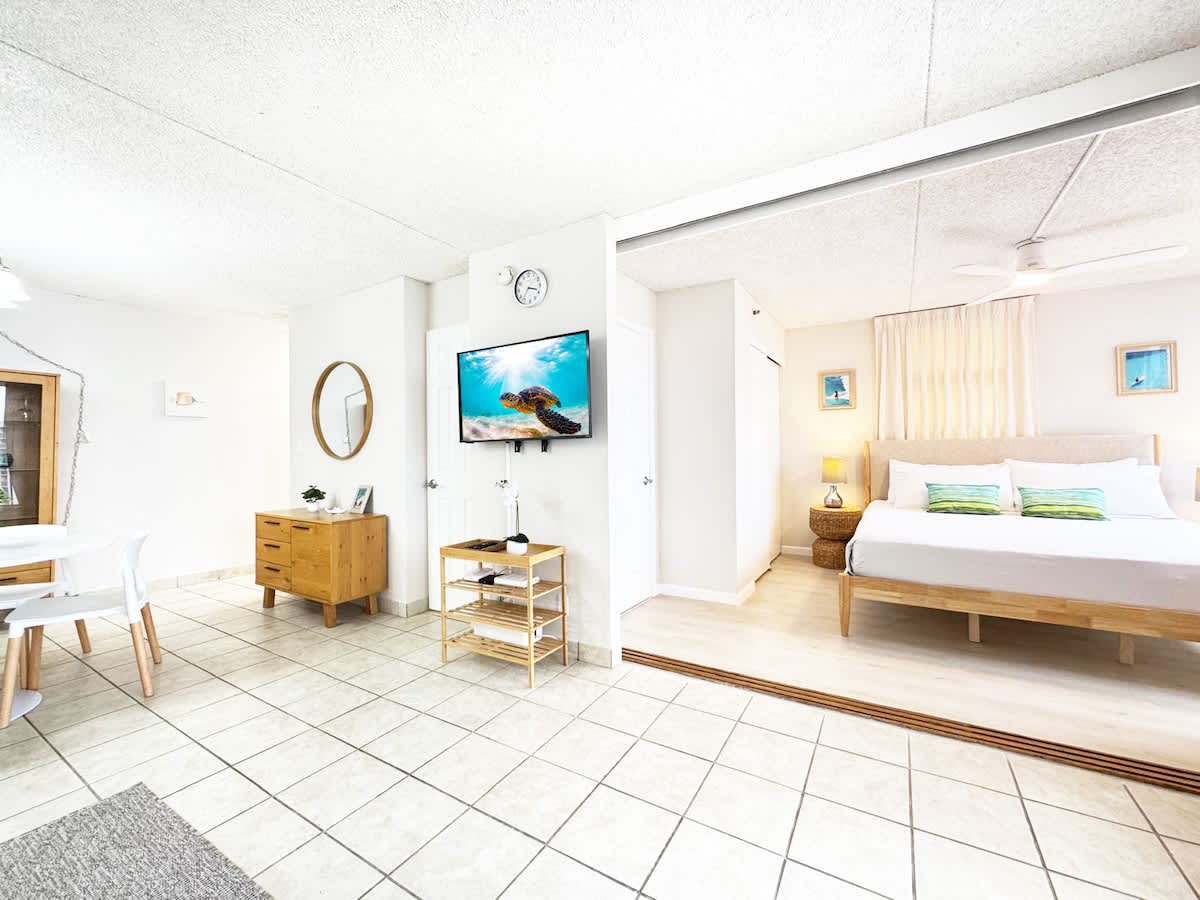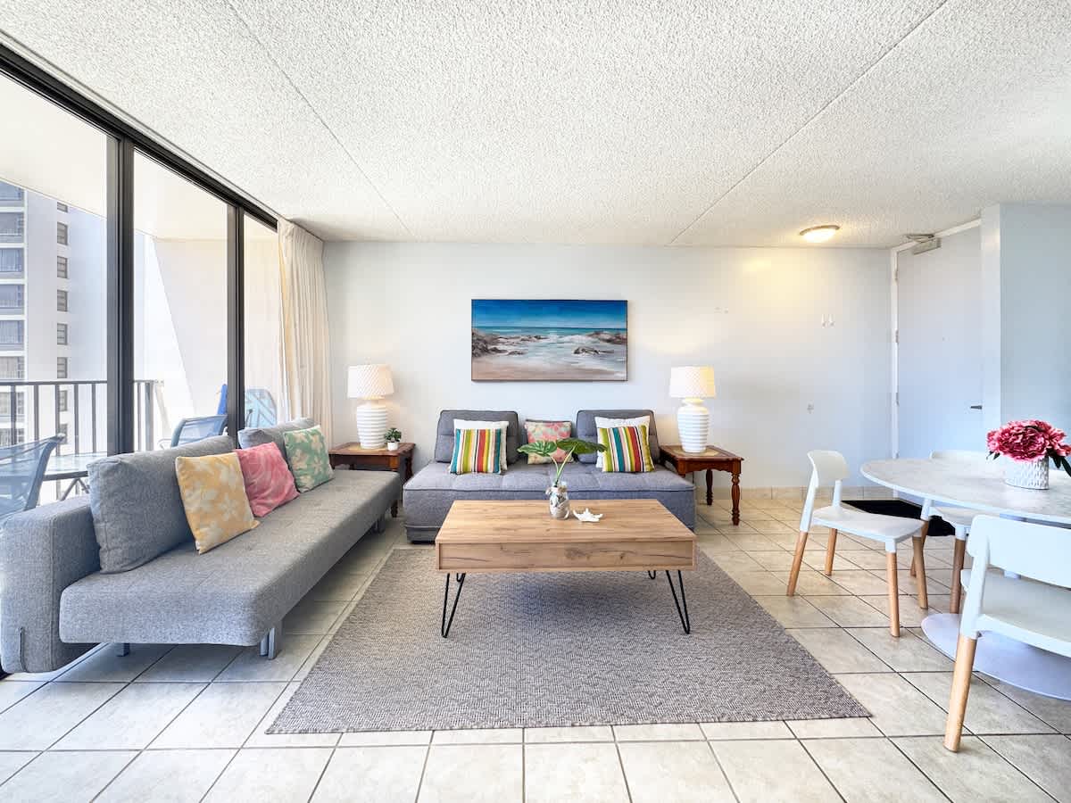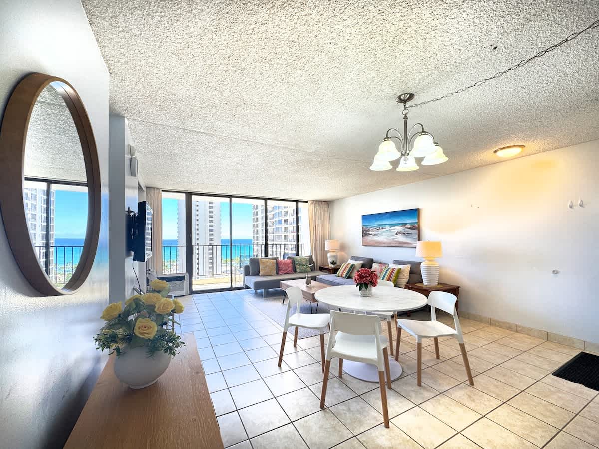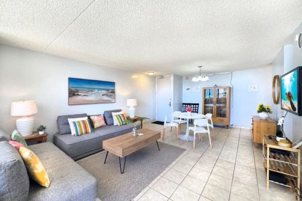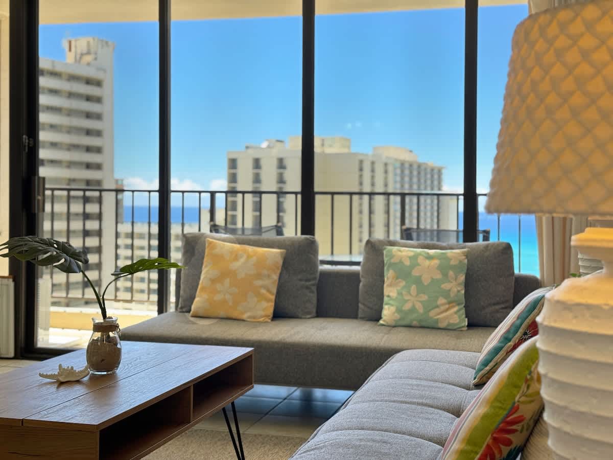 Aloha! Stay in the heart of Waikiki at the Waikiki Banyan, just 1 block from Waikiki Beach, and can accommodate 3 adults and 2 children. Located on the 19th floor, this ocean-view retreat offers a private lanai with beautiful ocean and city views and a cozy space to unwind after a day of exploring. Enjoy a relaxing, convenient stay close to shops, dining, and the shoreline!