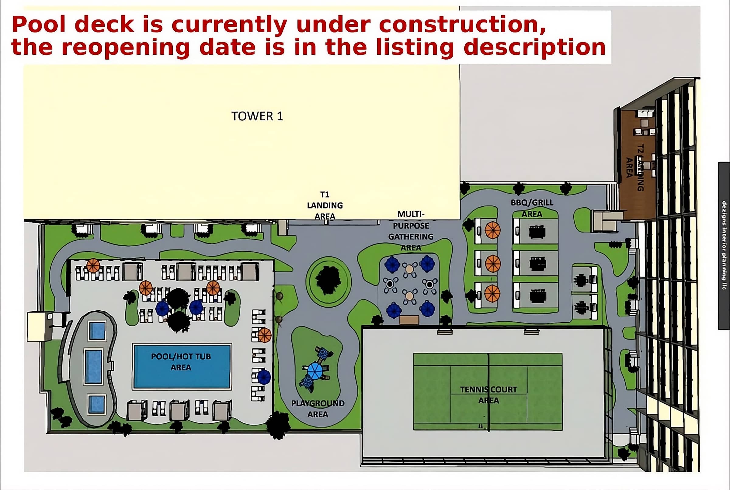 The recreation deck and its amenities are not accessible prior to May 18, 2026. Some daytime construction activity may be present. Rates have already been adjusted accordingly.