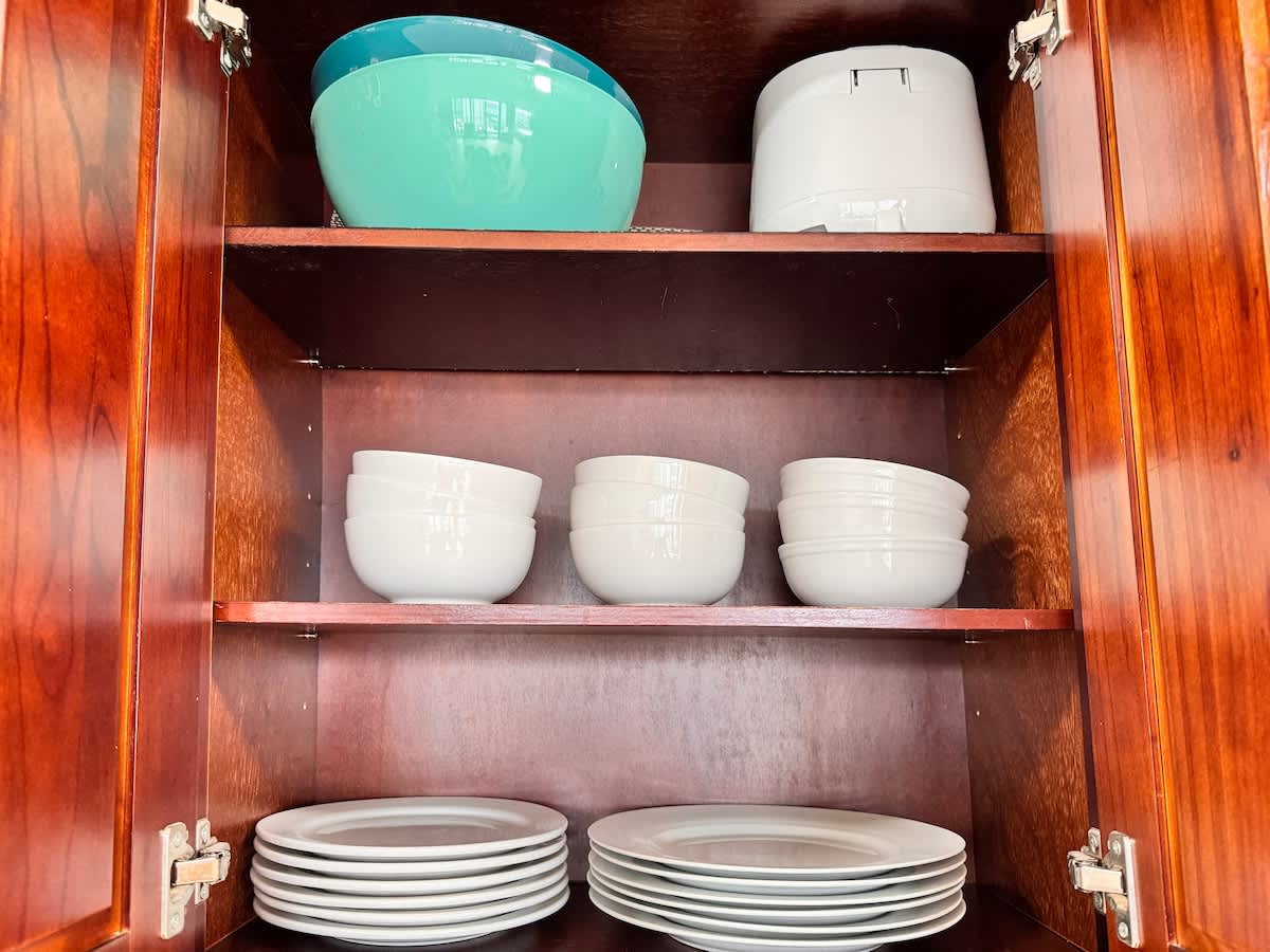 • Stocked with cookware, dishes, silverware, and utensils for home-style meals