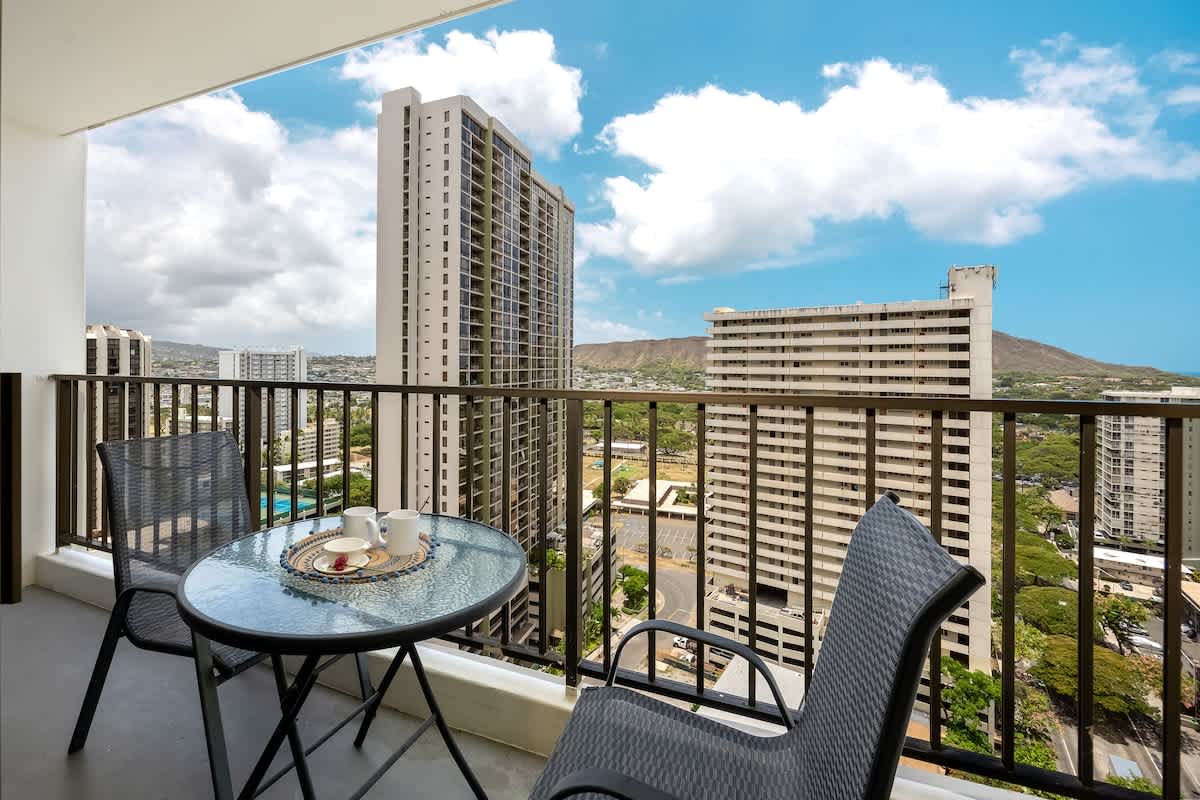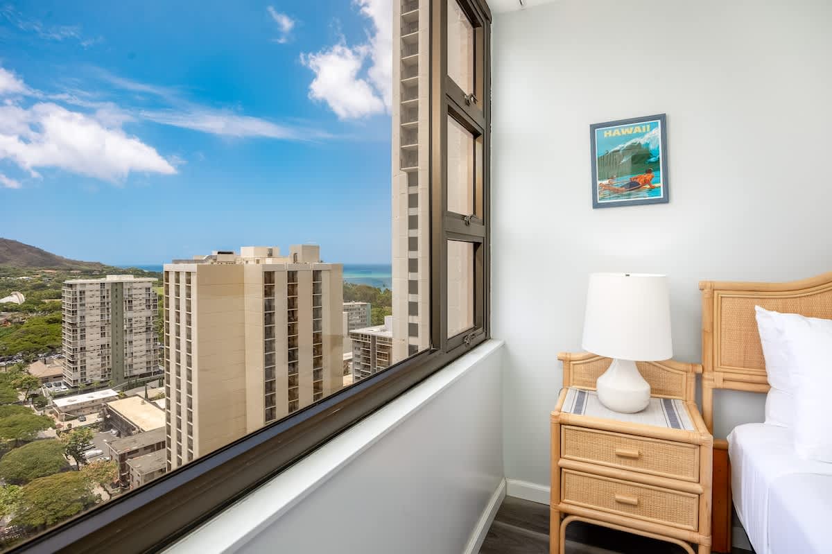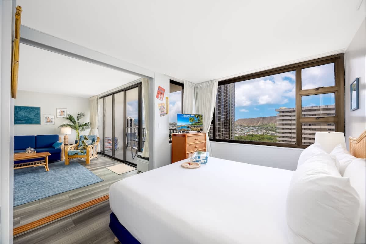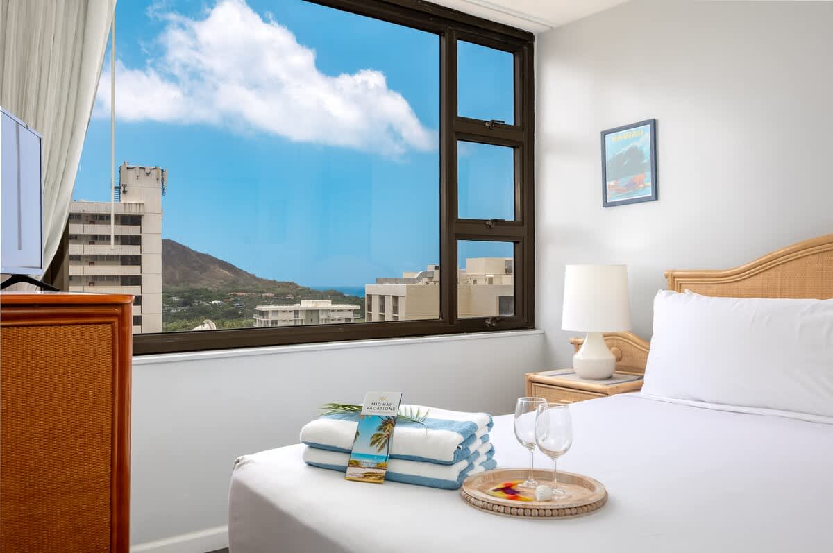 Experience comfort and convenience in this cozy 1BR condo at the Waikiki Banyan, brought to you by Midway Vacations. Ideal for up to 4 guests, it features a king bed, a pull-out sleeper sofa, and a private balcony offering beautiful views of Diamond Head, the city, and a glimpse of the ocean. Located just a short stroll from Waikiki Beach, shops, and restaurants, the unit also includes free high-speed Wi-Fi and complimentary parking for a hassle-free stay!