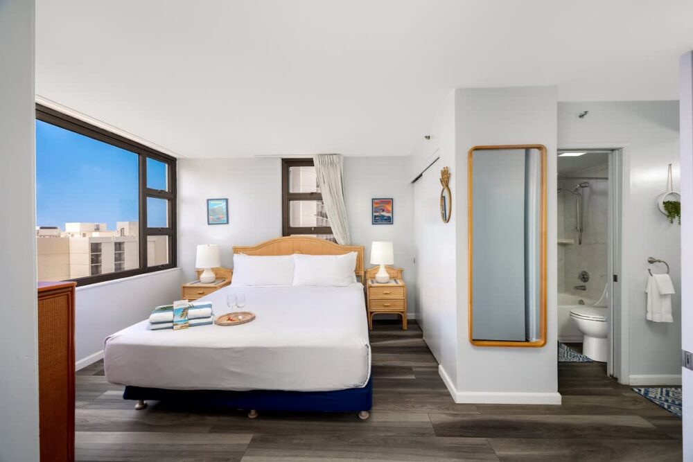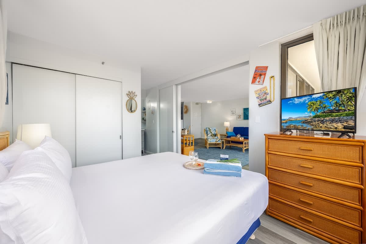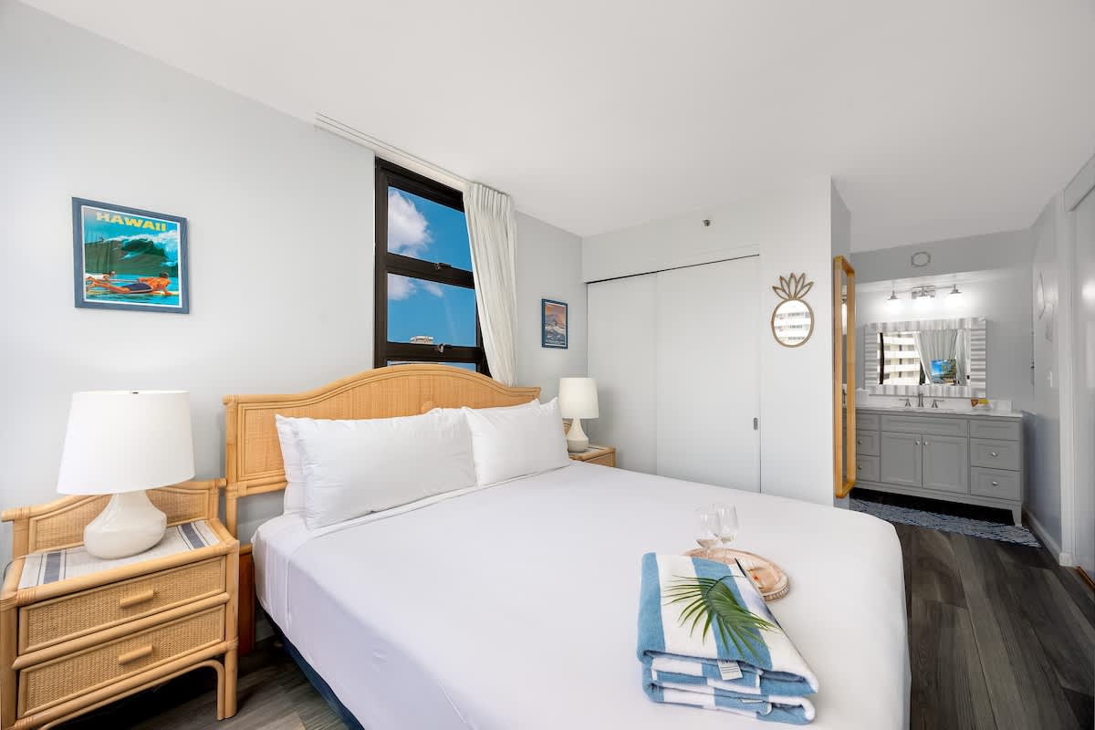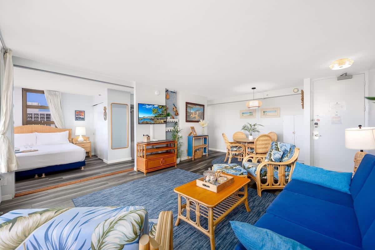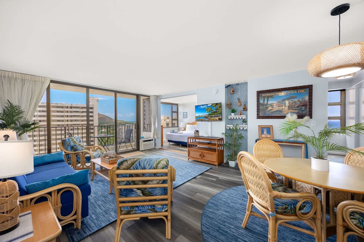 Experience comfort and convenience in this cozy 1BR condo at the Waikiki Banyan, brought to you by Midway Vacations. Ideal for up to 4 guests, it features a king bed, a pull-out sleeper sofa, and a private balcony offering beautiful views of Diamond Head, the city, and a glimpse of the ocean. Located just a short stroll from Waikiki Beach, shops, and restaurants, the unit also includes free high-speed Wi-Fi and complimentary parking for a hassle-free stay!