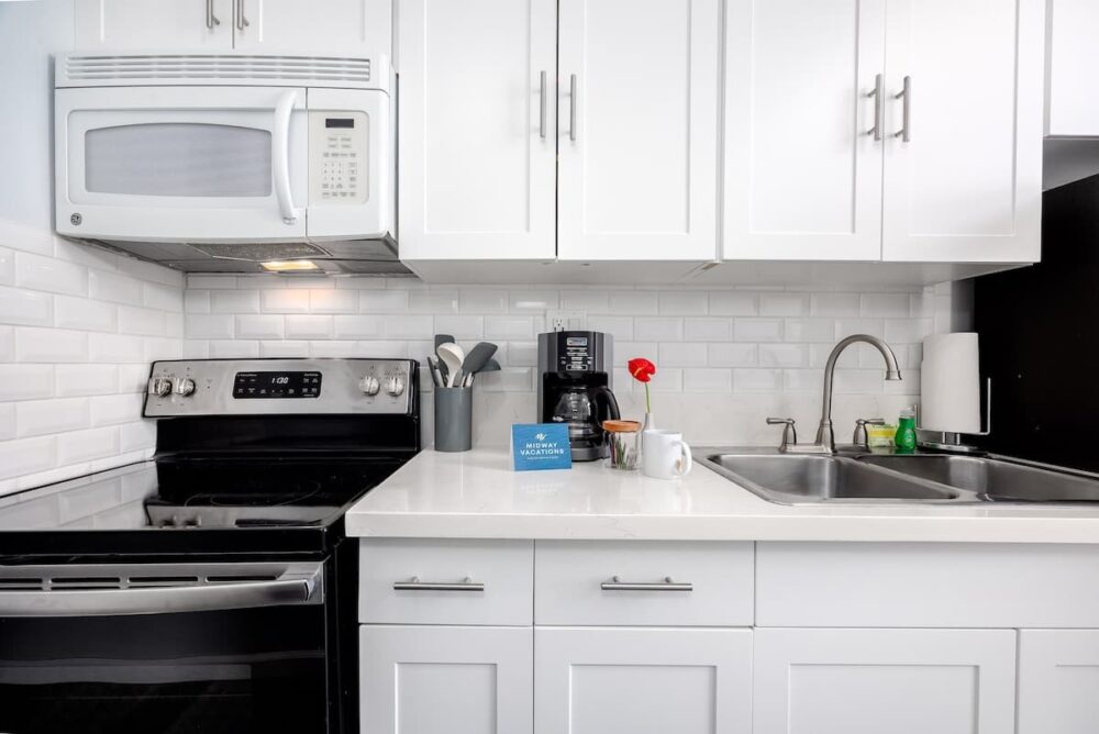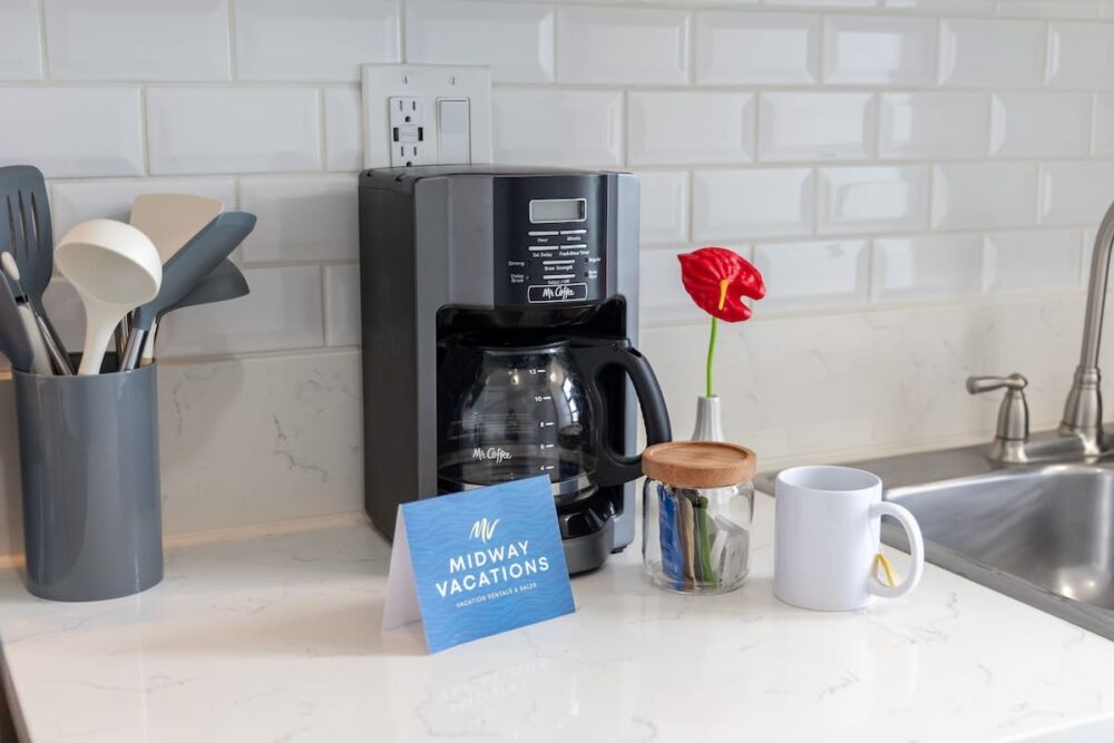 – Fully equipped with a toaster, Keurig coffee maker, rice cooker, blender, electric kettle, pots, pans, silverware, cookware, and dishes.