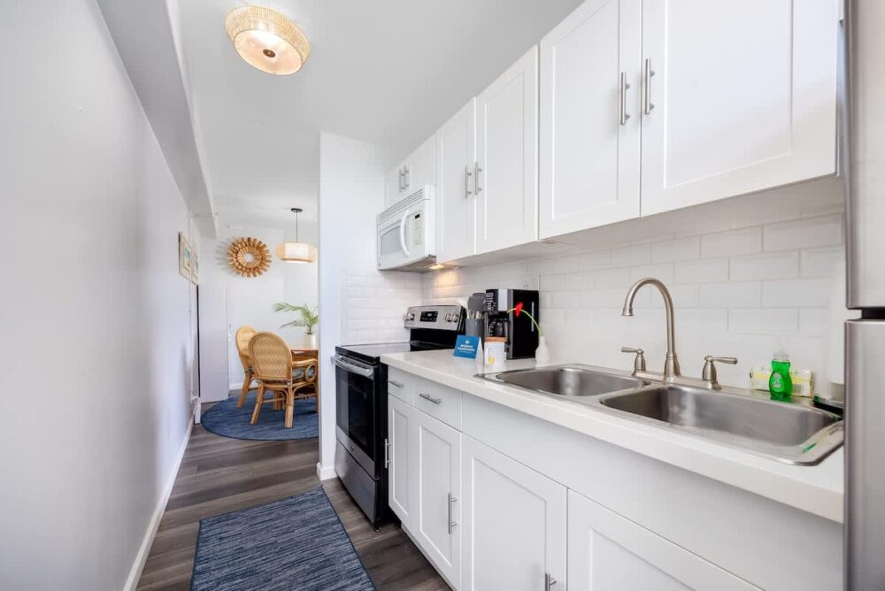 – Your very own Aloha Pack: coffee pods, salt and pepper, laundry detergent, dish soap and sponge, hand soap, shampoo/body wash/lotion set, toilet paper, paper towels, tissues, and cleaning supplies.
