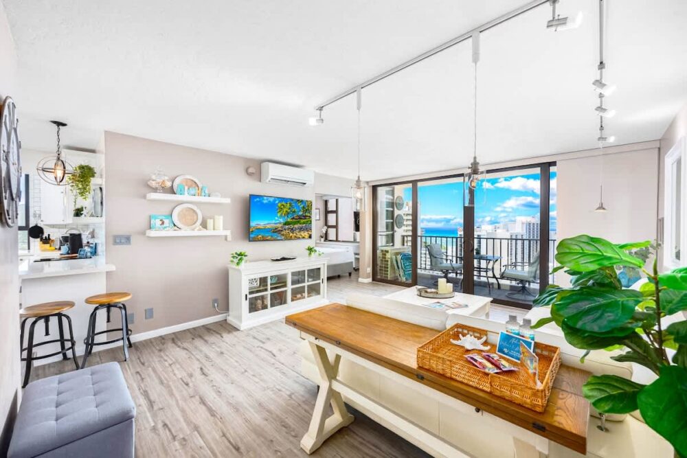 Ready to embark on your tropical paradise adventure? Get ready to immerse yourself in the lap of luxury as you step into this exquisitely remodeled, thoughtfully adorned 1-bedroom condo at the family-friendly Waikiki Banyan in the heart of historic Honolulu. Our condo, inspired by the beauty of the beach, promises to make your island escape truly unforgettable!