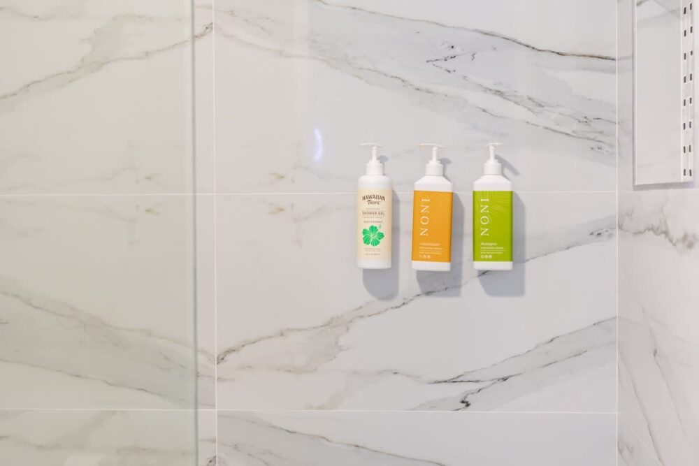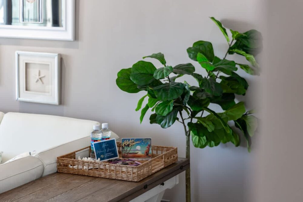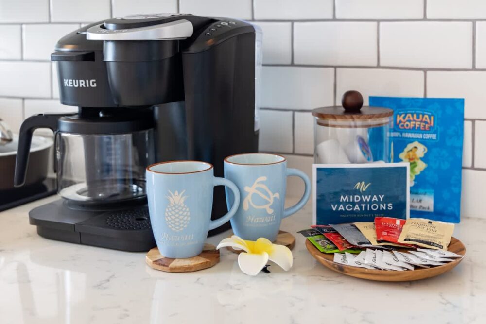 – Your very own Aloha Pack: coffee filters, salt and pepper, laundry detergent, dish soap and sponge, hand soap, shampoo/body wash/lotion set, toilet paper, paper towels, tissues, and cleaning supplies.