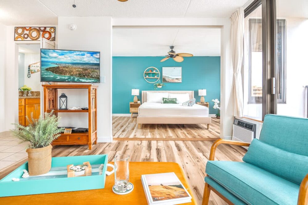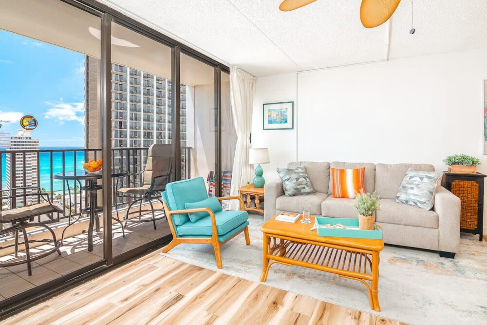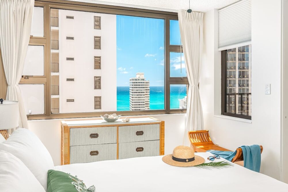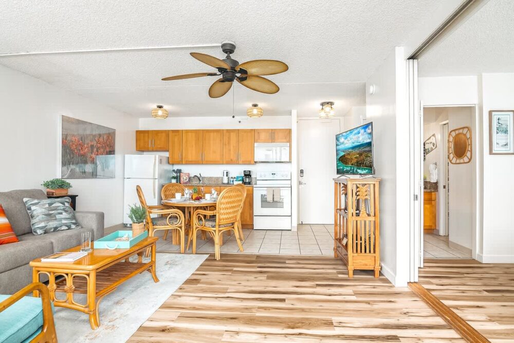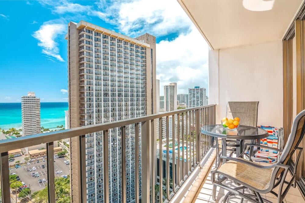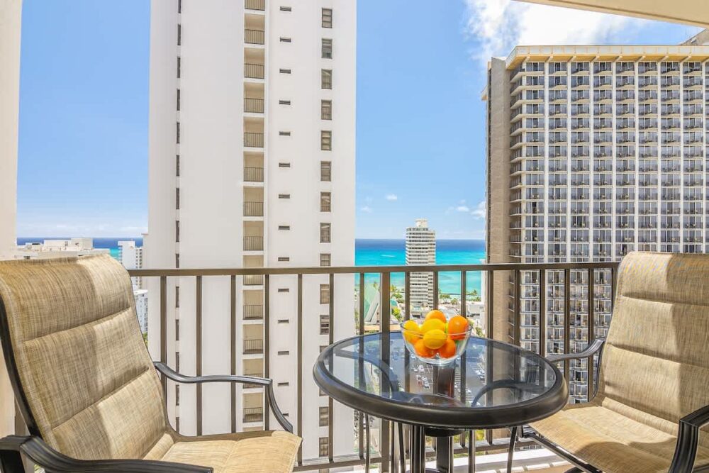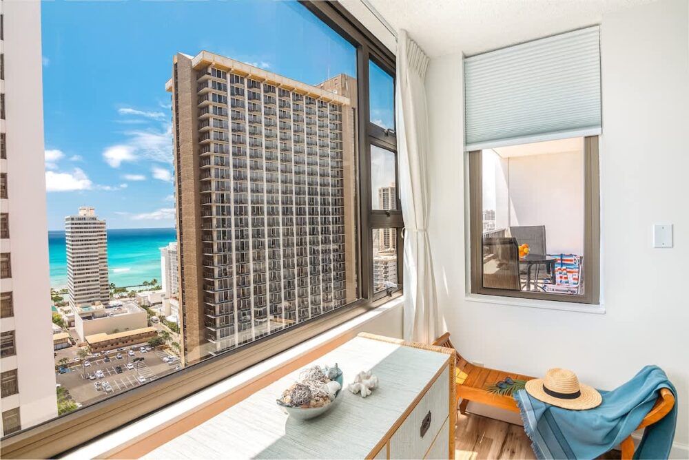 Ready for a taste of paradise? Relax in this beautiful cozy condo with ocean views at Waikiki Banyan (Tower 2- Mauka), just a block from Waikiki’s famous waves! On the 25th floor, enjoy breathtaking ocean views from the living room, bedroom, kitchen, and balcony.