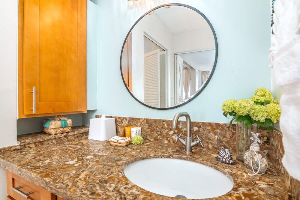 – Your very own Aloha Pack: coffee filters, salt and pepper, laundry detergent, dish soap and sponge, hand soap, shampoo/body wash/lotion set, toilet paper, paper towels, tissues, and cleaning supplies.