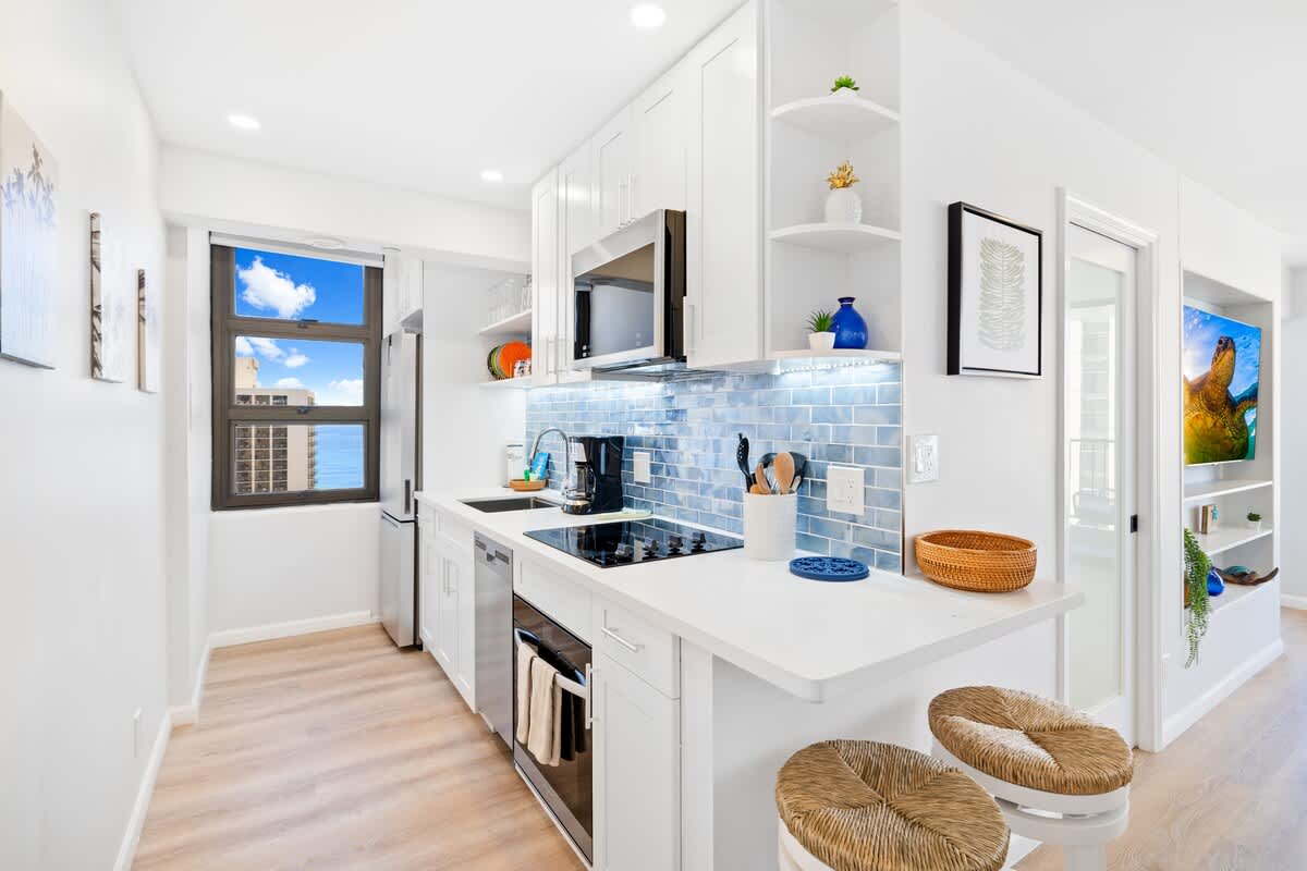 I would definitely stay here again. Very nice kitchen with updated appliances. The place was clean. Very good location. Walkable to the beach and a lot of popular places in Waikiki. The unit is at the end of the hallway. The hallway is outdated but the unit is entirely updated. You can hear the live music/luau performance in the evening from nearby hotels and it seemed to end by 8pm or 9pm. The elevators are busy in the morning between 8:30am and 9:30am/10am so if you want to get out without waiting too long for an elevator then leave before or after those times. Hoping to stay here next time. Mahalo!